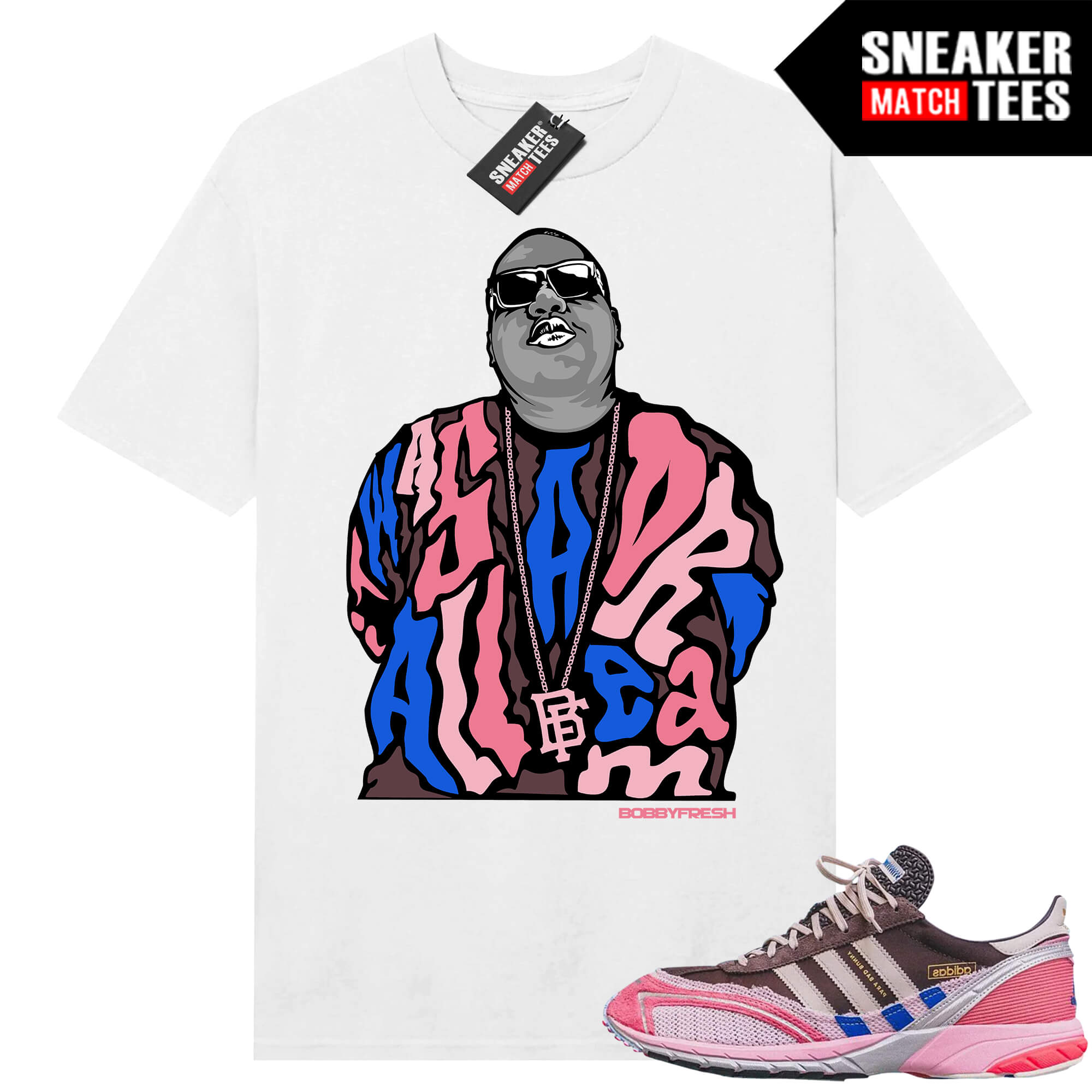 Biggie It was All A Dream x Sneaker Match ® Collection. Bad Bunny x Adizero SL72 Shirt to match. Sneaker clothing and graphic sneaker tees to match the latest sneakers.