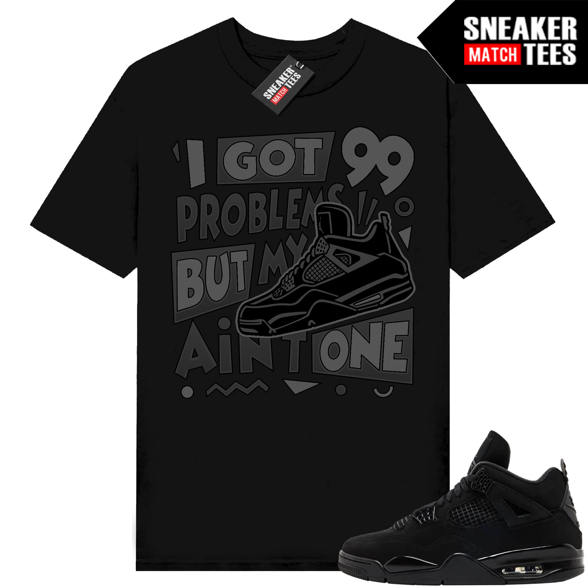 Jordan 4 Black Cat x Sneaker Match ® Collection. Black Cat 4s Jordan Match Tees Black Shirt 99 Problems. Sneaker clothing and graphic sneaker tees to match the latest sneakers.