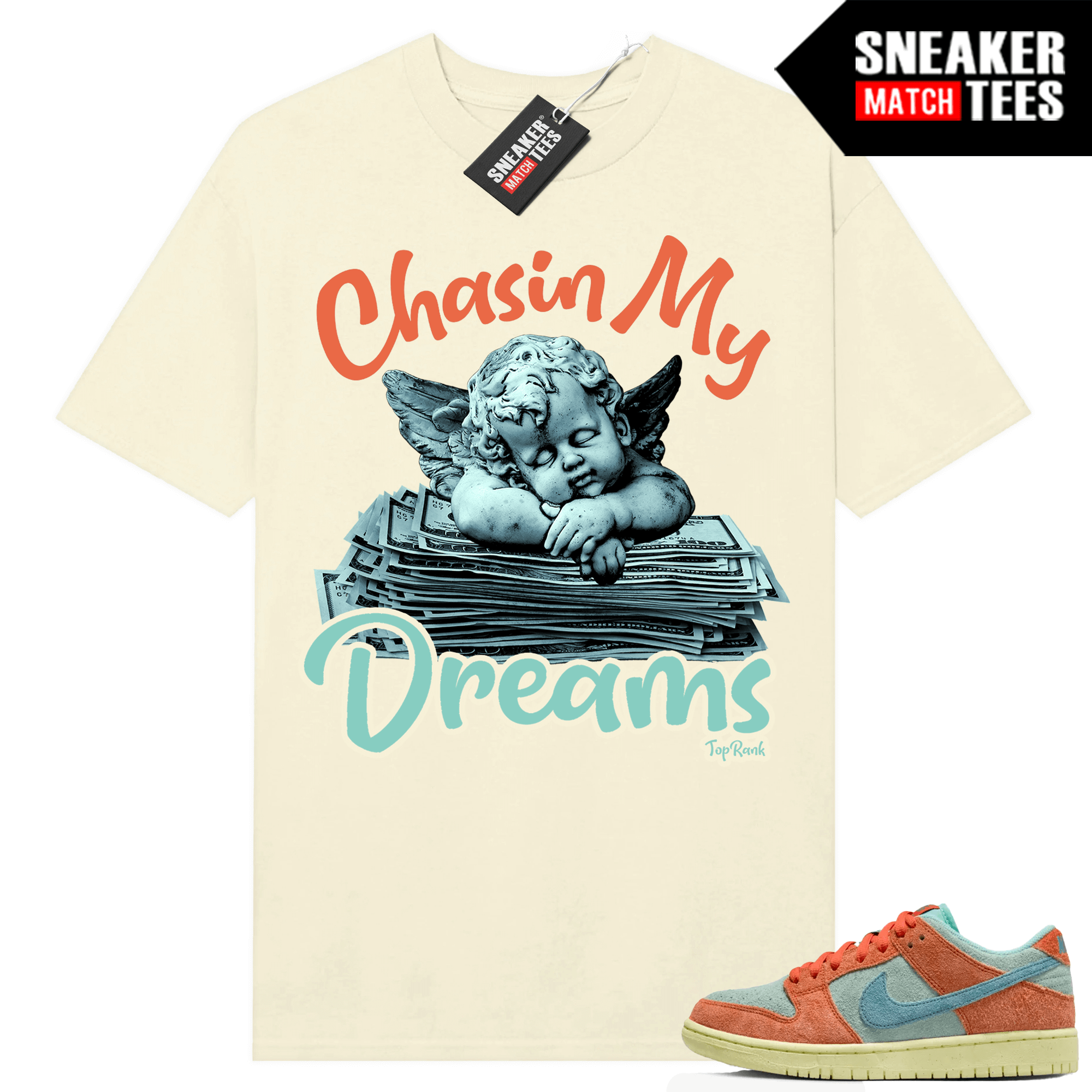 Dunks Orange Emerald Rise T-shirt Sneaker Match Butter Sail Chasing My Dreams. Sneaker Match shirts designed to match Dunk Low Orange Emerald Rise colorway. Sneaker clothing and apparel to match Dunk Low sneakers.