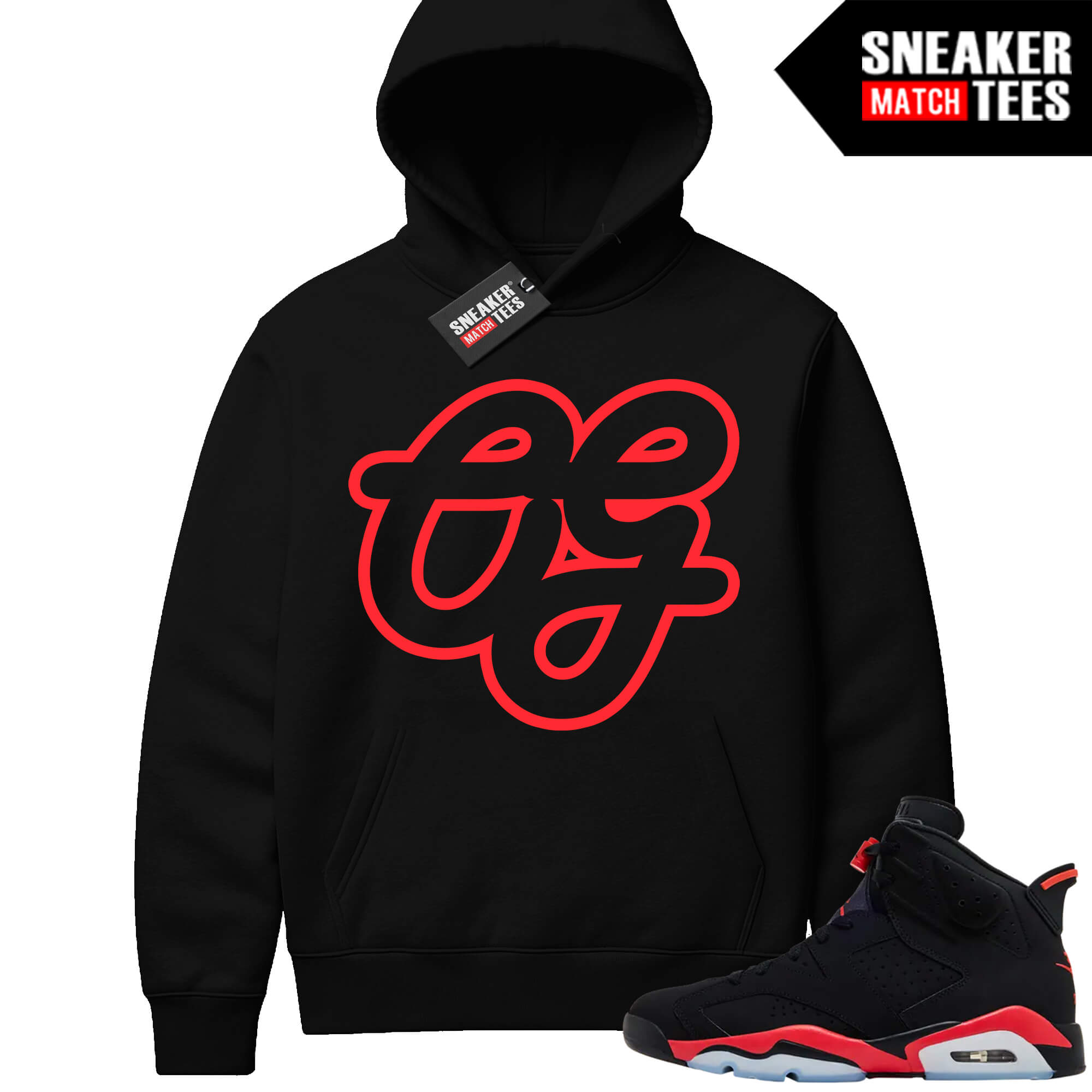 Infrared 6s Reverse Sneaker Match Hoodies Black OG Script. Sneaker Match Hoodies designed to match Infrared 6s colorway. Sneaker clothing and apparel to match Jordan 6 Infrared retro sneakers.