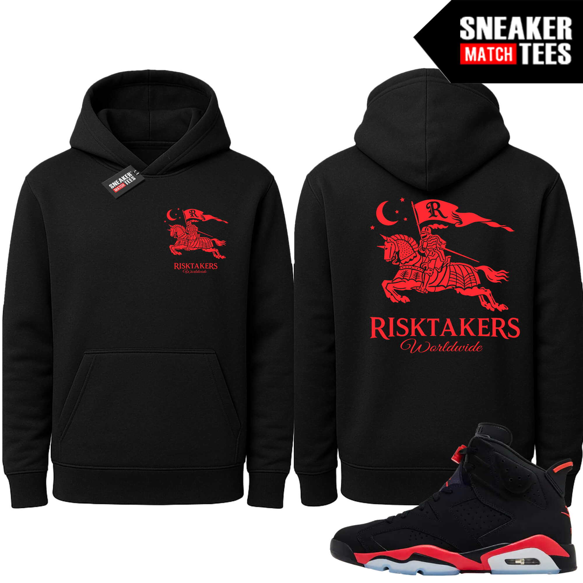Infrared 6s Reverse Sneaker Match Hoodies Black Risktakers Worldwide Knight. Sneaker Match Hoodies designed to match Infrared 6s colorway. Sneaker clothing and apparel to match Jordan 6 Infrared retro sneakers.