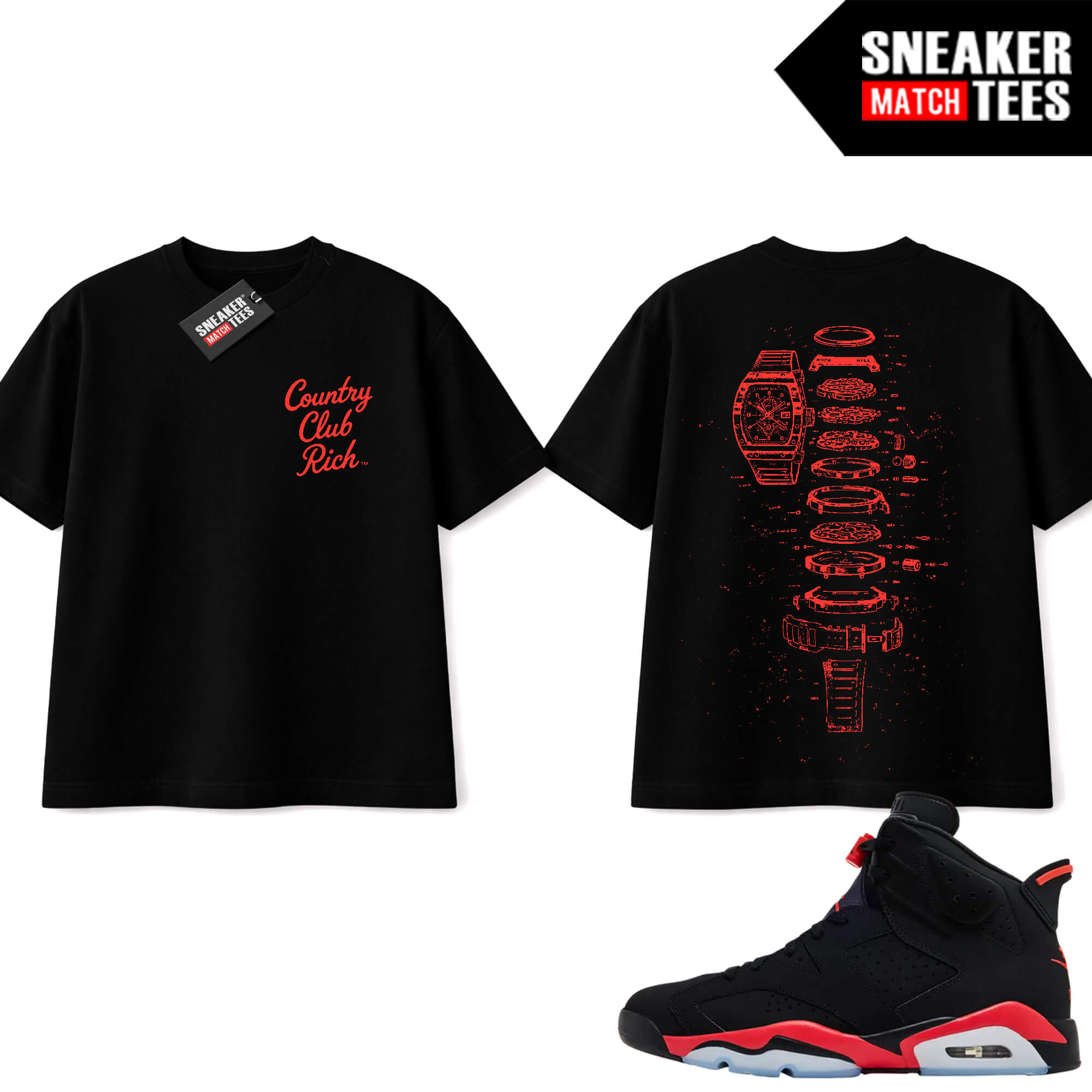 The “Black Country Club Rich Richard Milly” Tee shirt was designed to match with your Jordan 8 sneakers. This design is exclusive to Sneaker Match Tees Online shop. Complete your Sneaker outfit with this exclusive design.