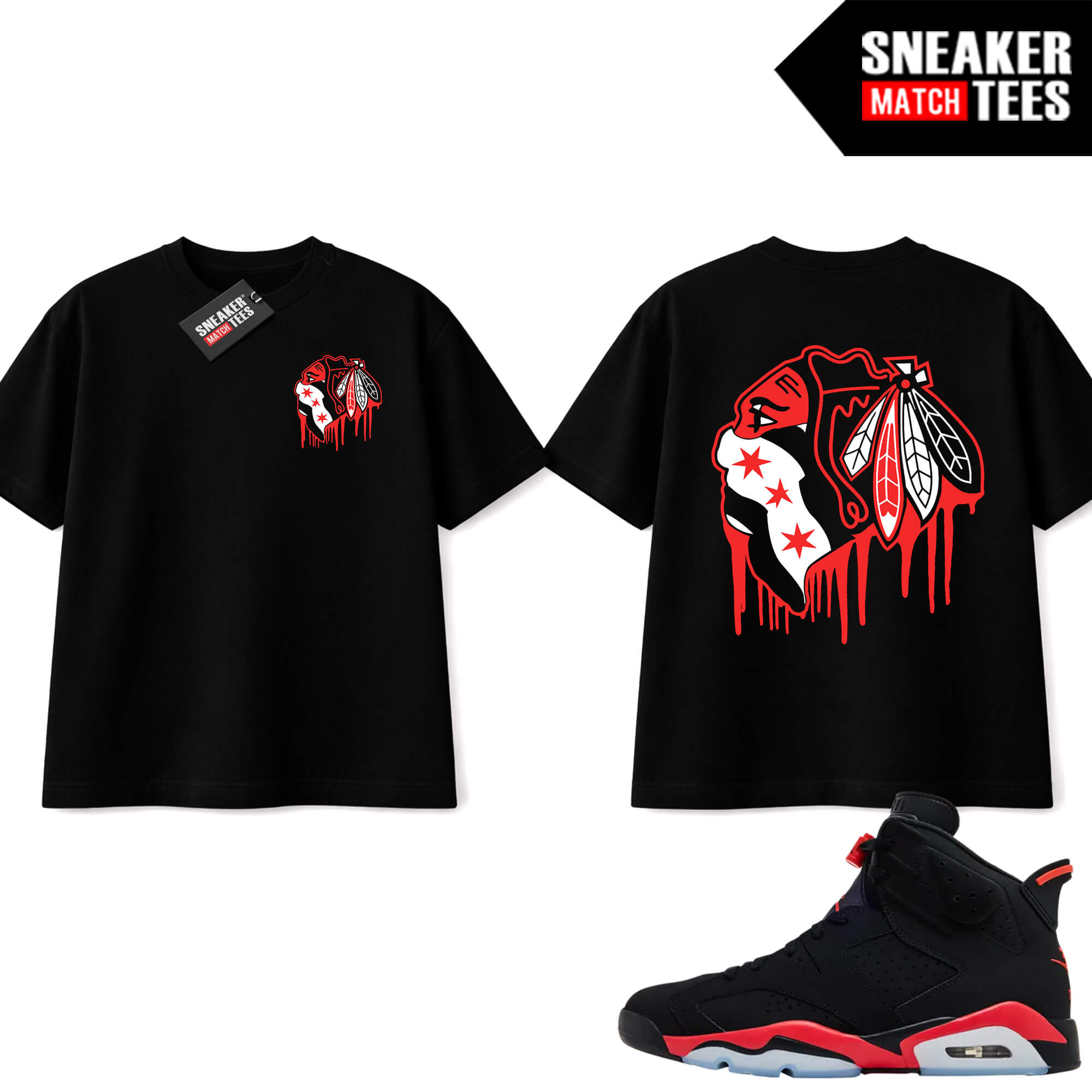 The “Black Hawks Drip” Tee shirt was designed to match with your Jordan 8 sneakers. This design is exclusive to Sneaker Match Tees Online shop. Complete your Sneaker outfit with this exclusive design.