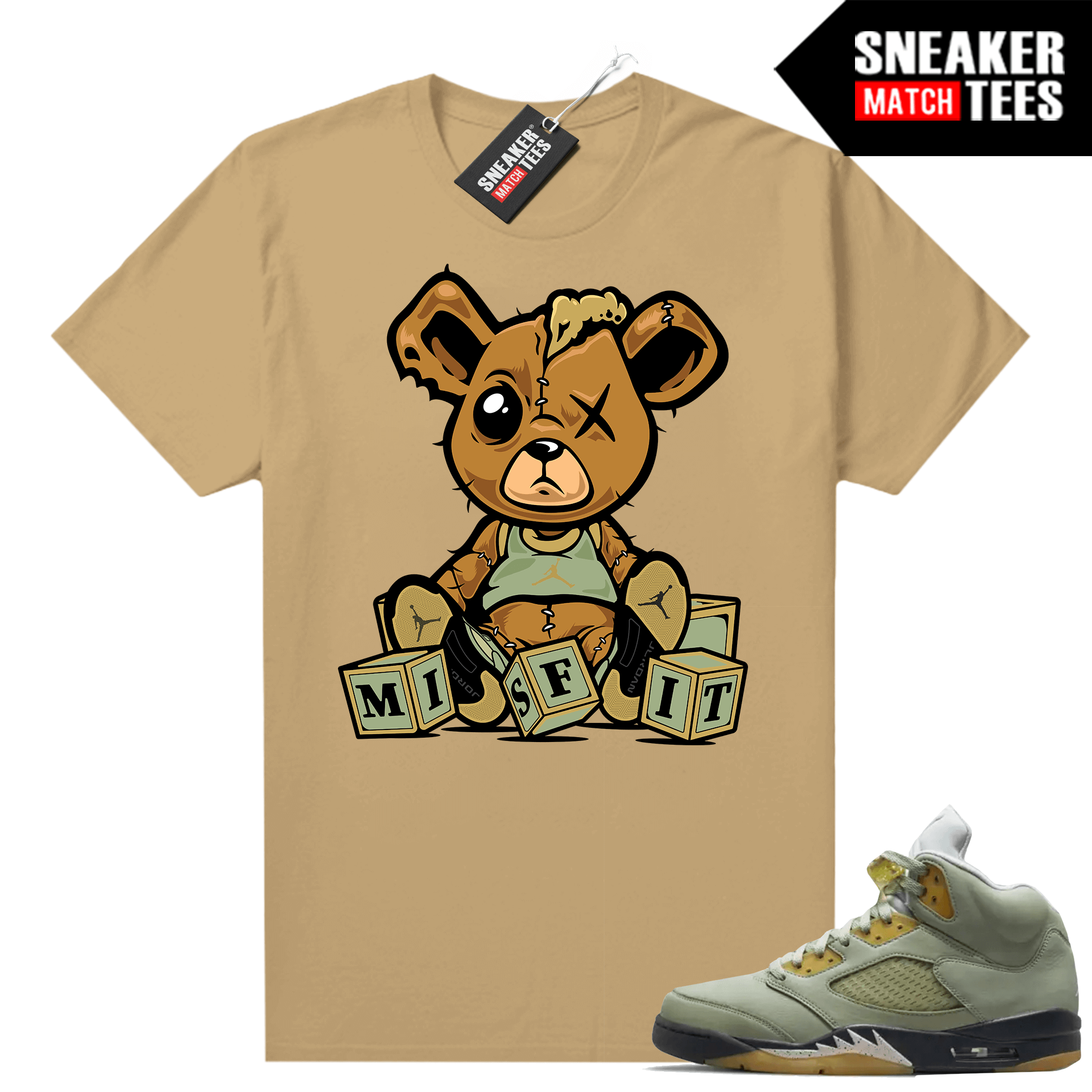Jade Horizon 5s Sneaker Match Tees Tan Misfit Teddy. Sneaker Match shirts designed to match Jordan 5 “Jade Horizon” colorway. Sneaker clothing and apparel to match Jordan 5 retro sneakers.