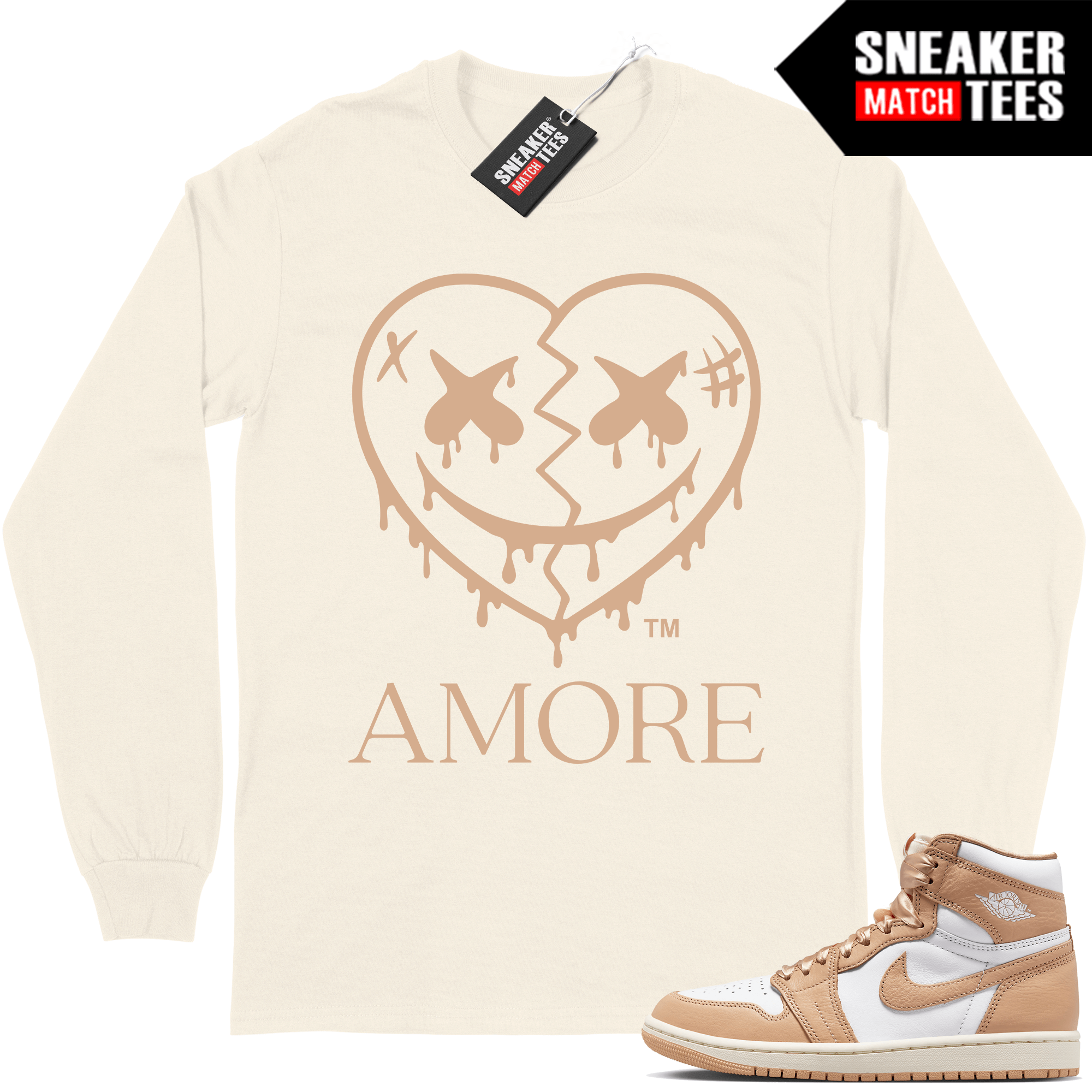 AMORE ™ x Sneaker Match ® Collection. Jordan 1 Praline Long Sleeve shirt Sneaker Match Sail AMORE Crazy Love Heart. Sneaker clothing and graphic sneaker tees to match the latest sneakers.