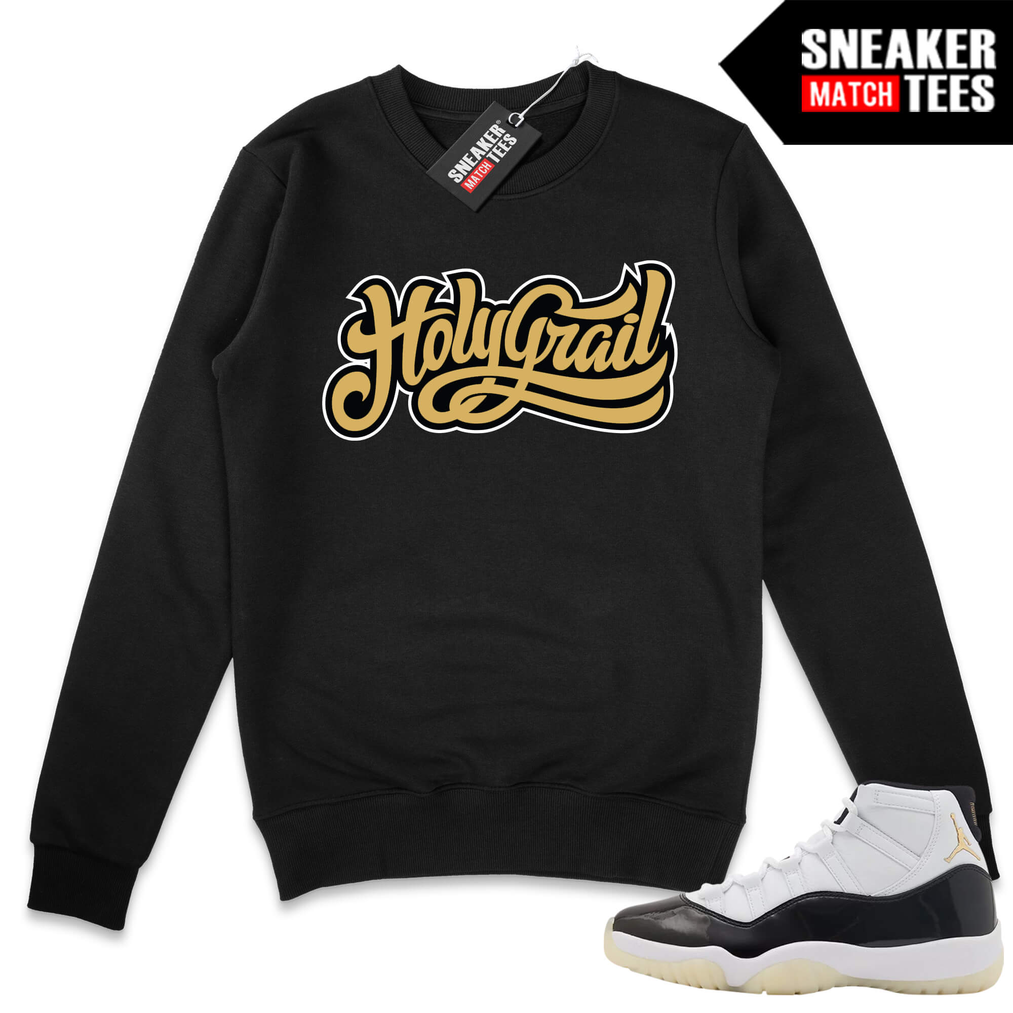 Jordan 11 DMP Gratitude Sneaker Match Sweater Crewneck Black Holy Grail. Sneaker Match Sweater designed to match Gratitude DMP 11s colorway. Sneaker clothing and apparel to match Jordan 11 DMP Gratitude retro sneakers.