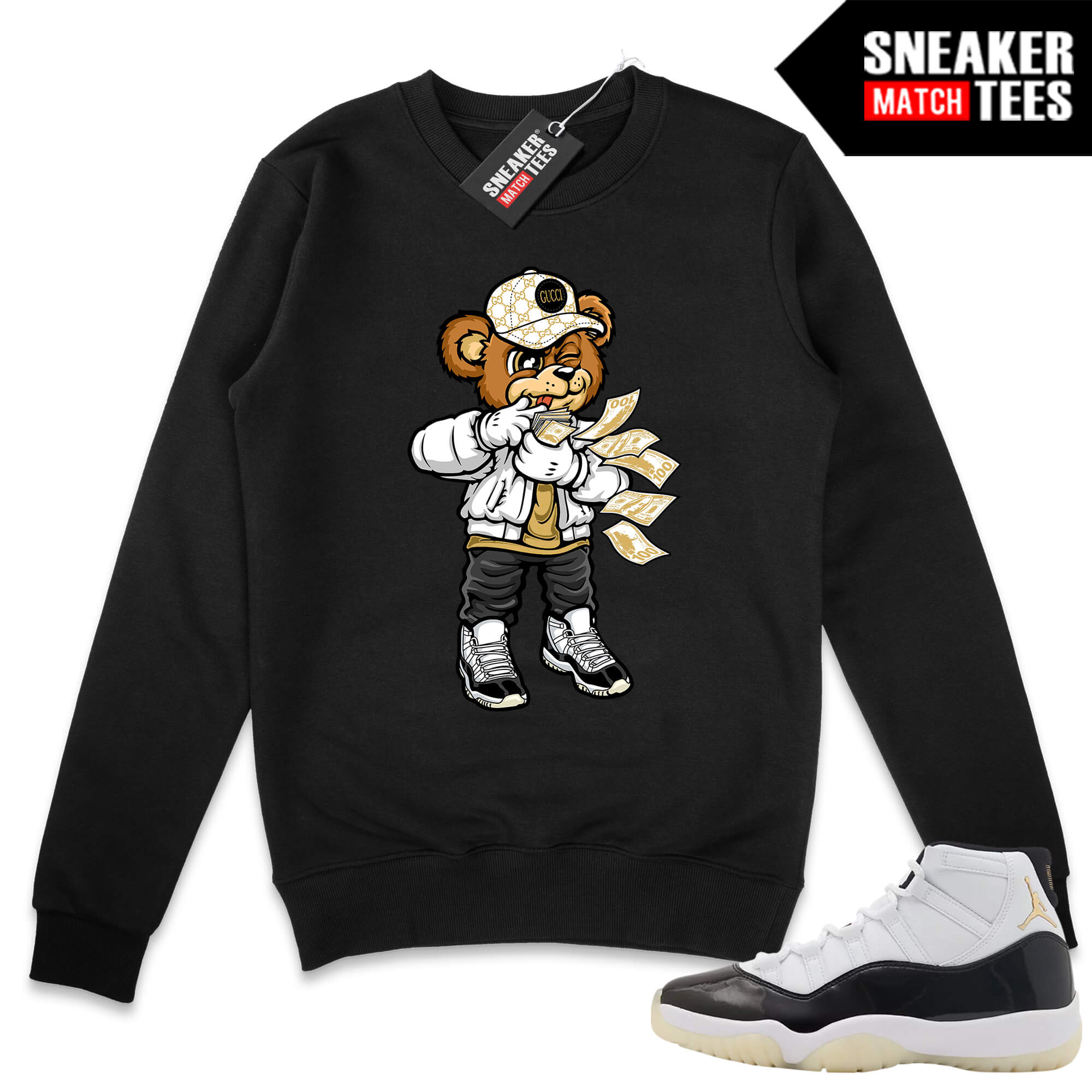 The Gratitude 11s “Rich Bear” sweater was designed to match with your Air Jordan sneakers. This design is exclusive to Sneaker Match Tees Online shop. Complete your Sneaker outfit with this exclusive design.