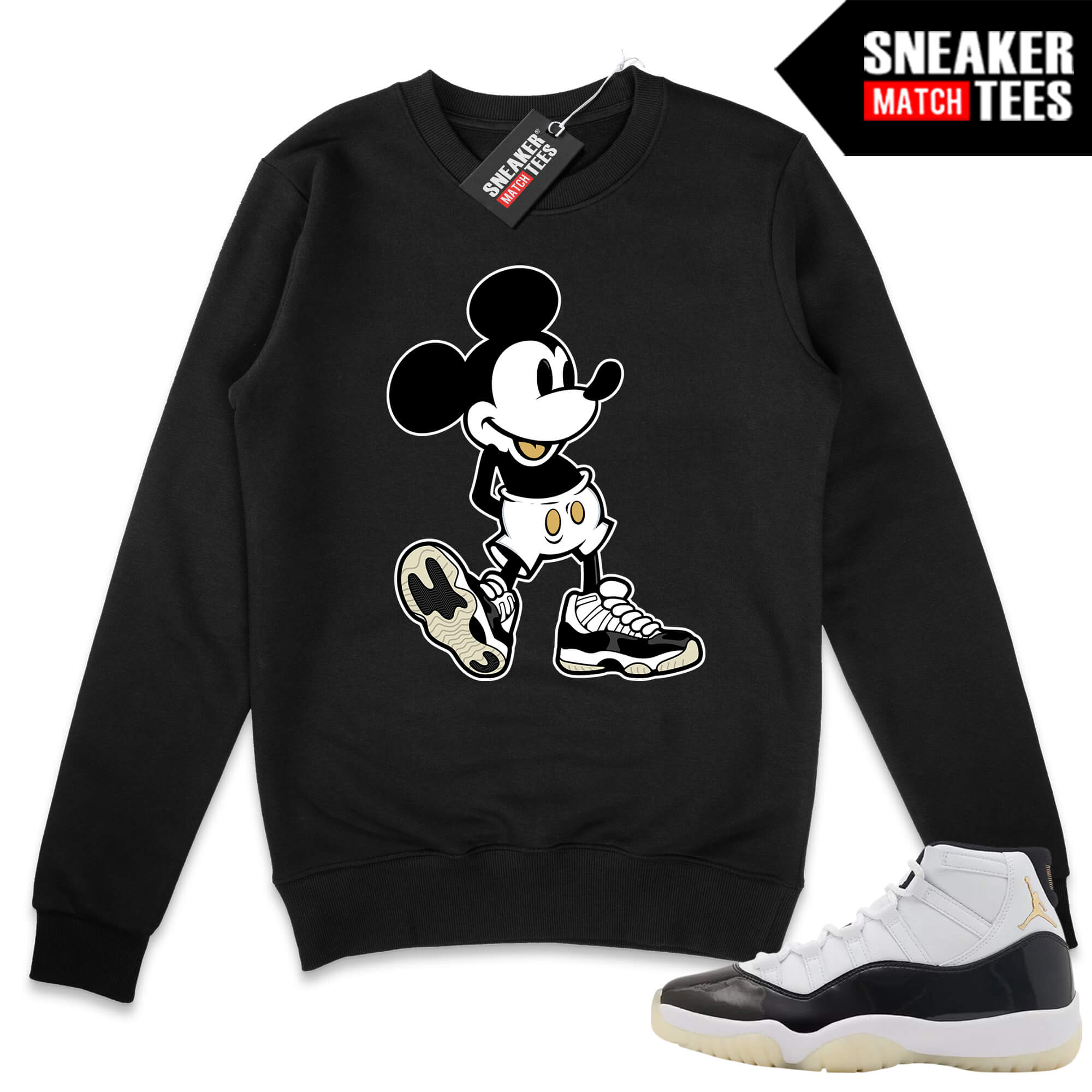 Jordan 11 DMP Gratitude Sneaker Match Sweater Crewneck Black Sneakerhead Mickey. Sneaker Match Sweater designed to match Gratitude DMP 11s colorway. Sneaker clothing and apparel to match Jordan 11 DMP Gratitude retro sneakers.