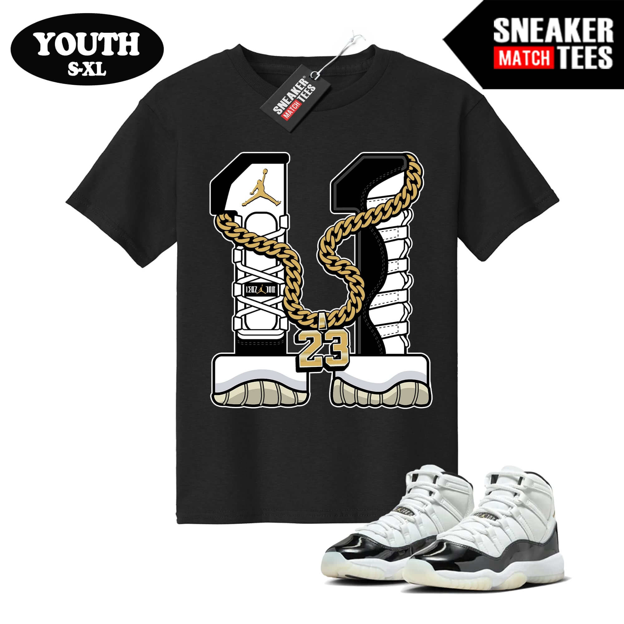 The Gratitude 11s “11s” Youth Tee was designed to match with your Air Jordan sneakers. This design is exclusive to Sneaker Match Tees Online shop. Complete your Sneaker outfit with this exclusive design.
