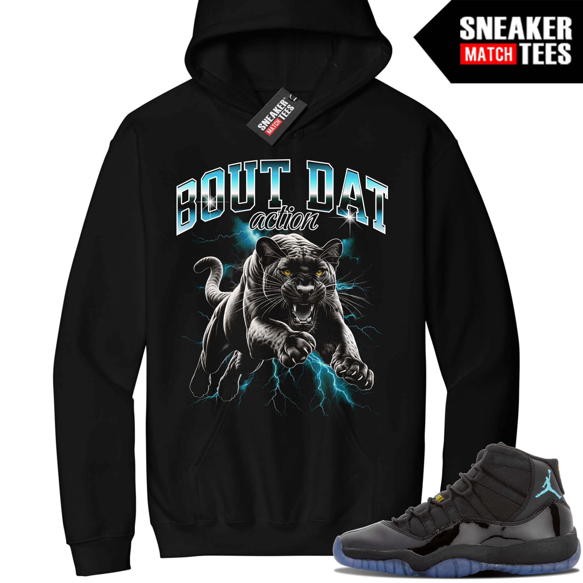 Jordan 11 Gamma Sneaker Match Hoodie Black Bout Dat Action. Sneaker Match Hoodies designed to match the Latest sneaker release.