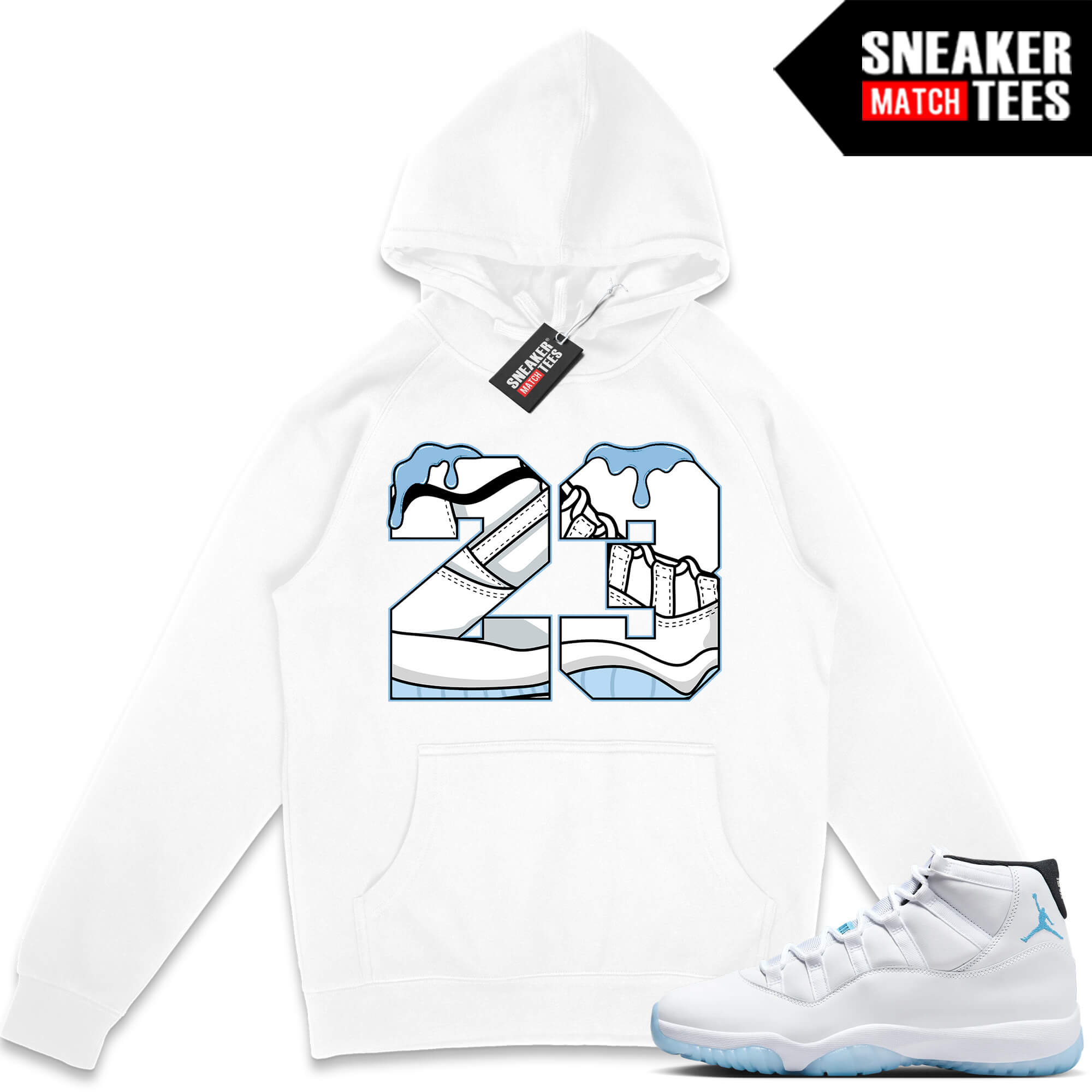 Jordan 11 Legend Blue Sneaker Match Hoodie White 23 Drip. Sneaker Match Hoodies designed to match Legend Blue 11s colorway. Sneaker clothing and apparel to match Jordan 11 Legend blue retro sneakers.