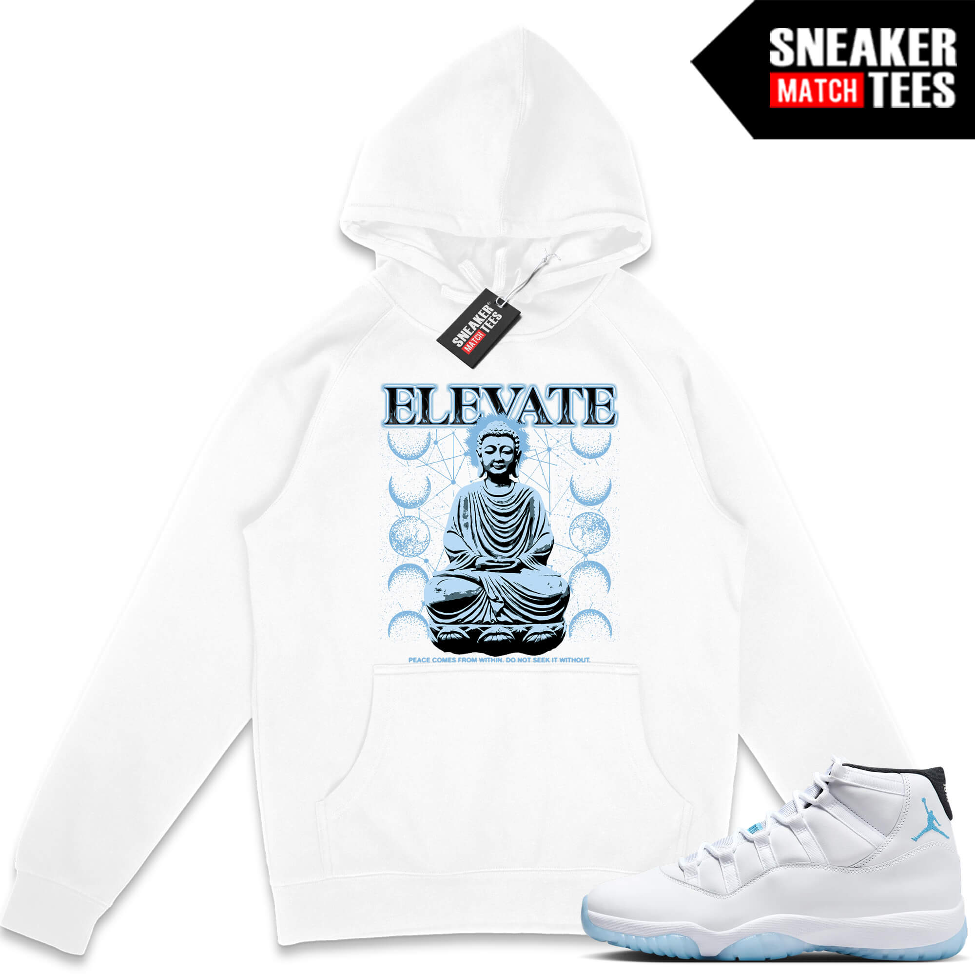 Jordan 11 Legend Blue Sneaker Match Hoodie White Elevate. Sneaker Match Hoodies designed to match Legend Blue 11s colorway. Sneaker clothing and apparel to match Jordan 11 Legend blue retro sneakers.