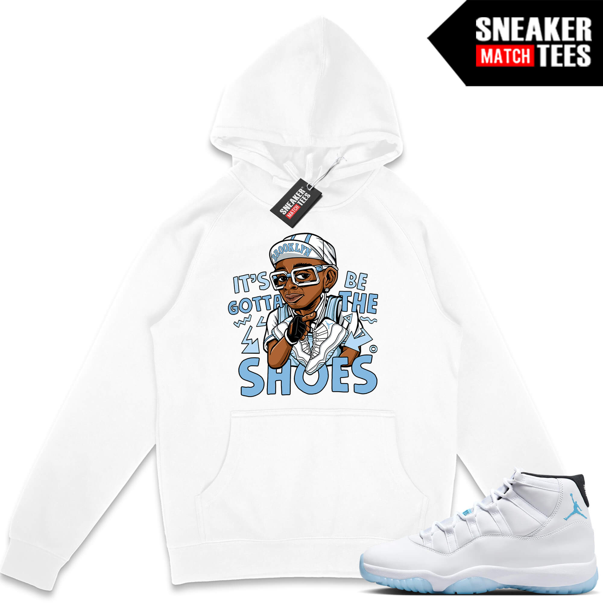 Jordan 11 Legend Blue Sneaker Match Hoodie White Gotta be the shoes. Sneaker Match Hoodies designed to match Legend Blue 11s colorway. Sneaker clothing and apparel to match Jordan 11 Legend blue retro sneakers.