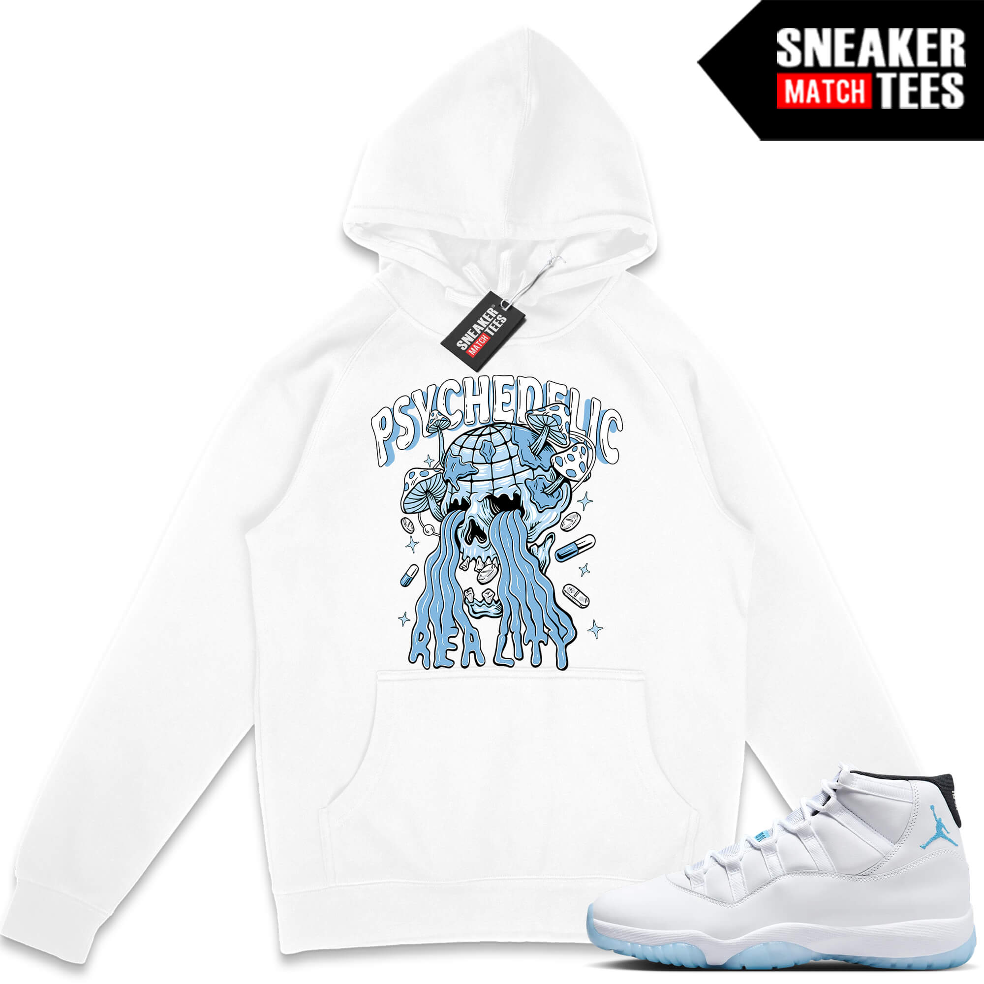 Jordan 11 Legend Blue Sneaker Match Hoodie White Psychedelic. Sneaker Match Hoodies designed to match Legend Blue 11s colorway. Sneaker clothing and apparel to match Jordan 11 Legend blue retro sneakers.