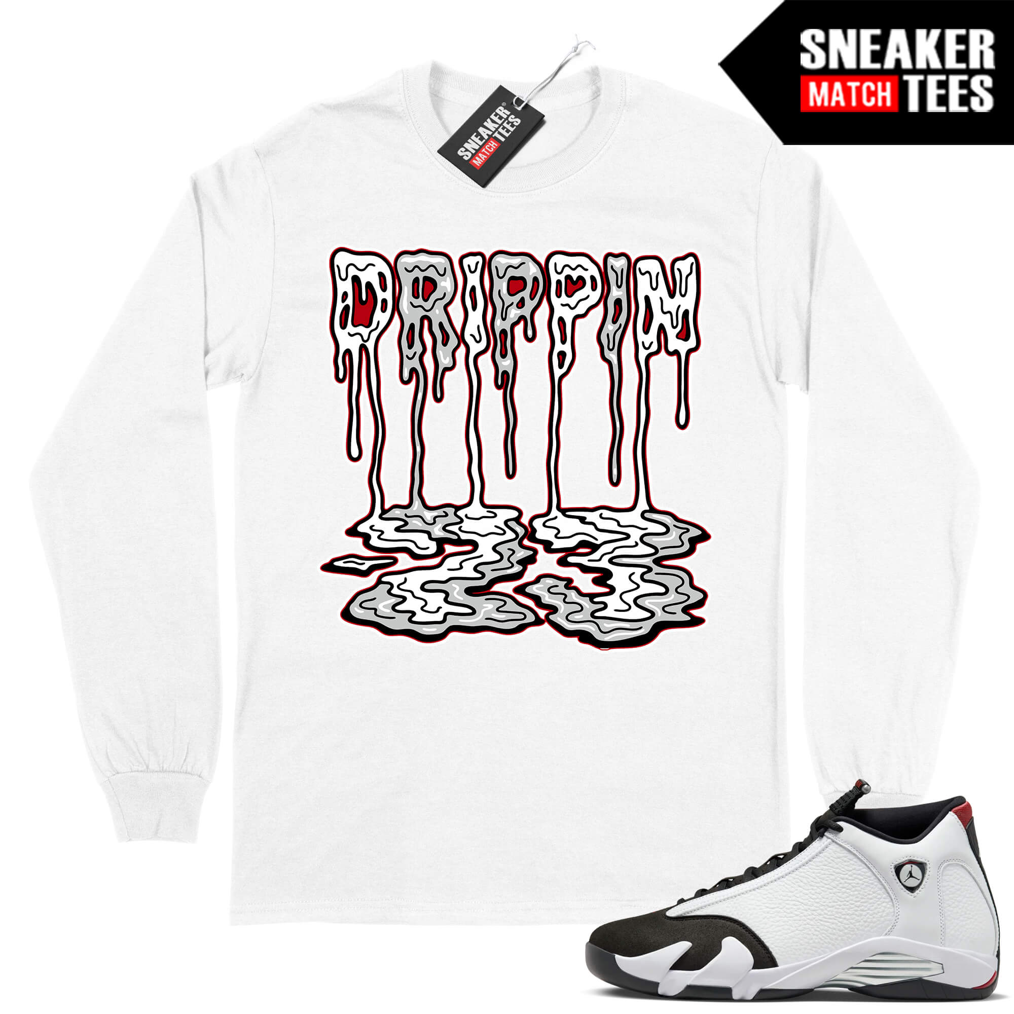 Jordan 14 Black toe x Sneaker Match ® Collection. Jordan 14 Black Toe Sneaker Match Tees Long Sleeve Shirt White Drippin 23. Sneaker clothing and graphic sneaker tees to match the latest sneakers.