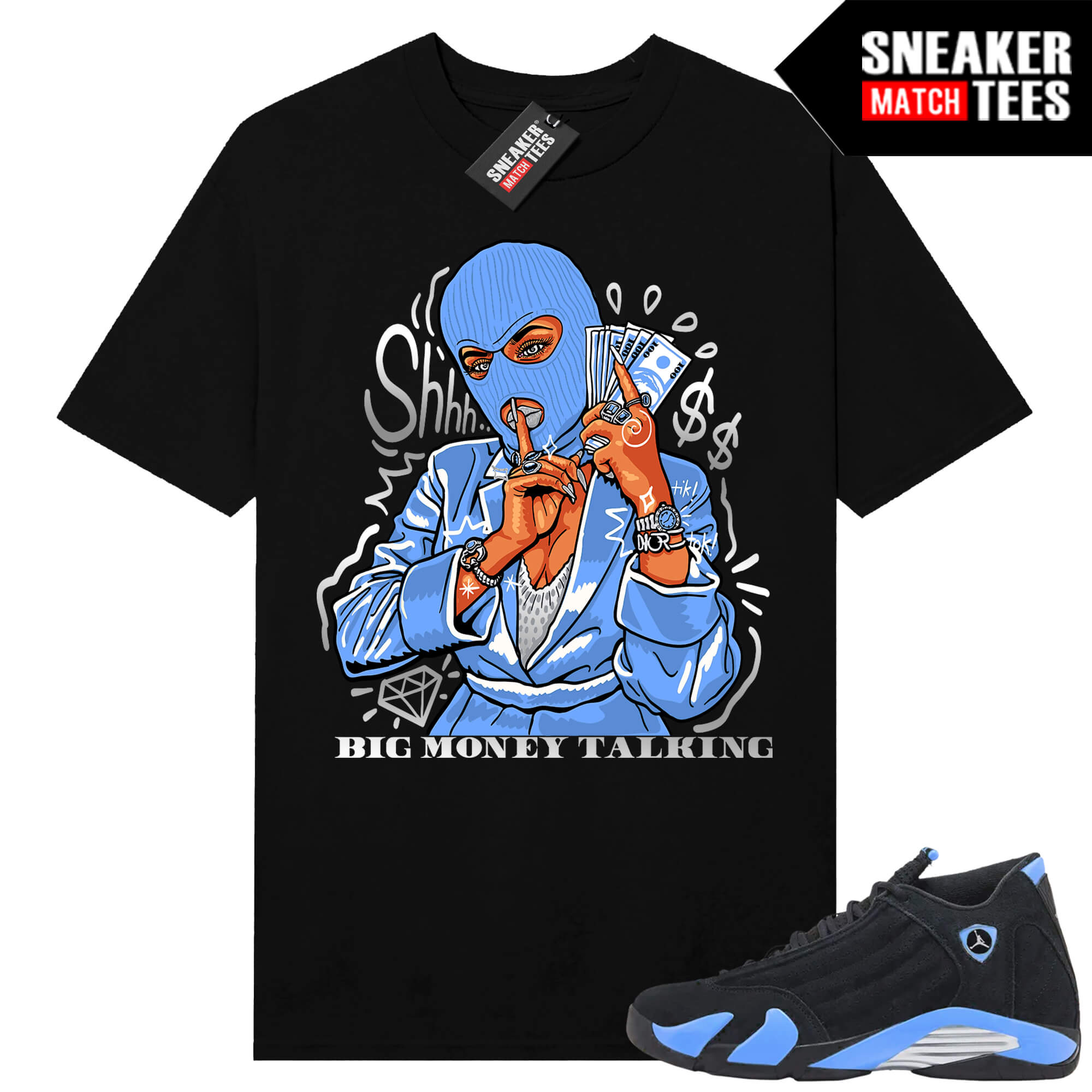The “Big Money Talking” Tee shirt was designed to match with your Jordan 14 sneakers. This design is exclusive to Sneaker Match Tees Online shop. Complete your Sneaker outfit with this exclusive design.