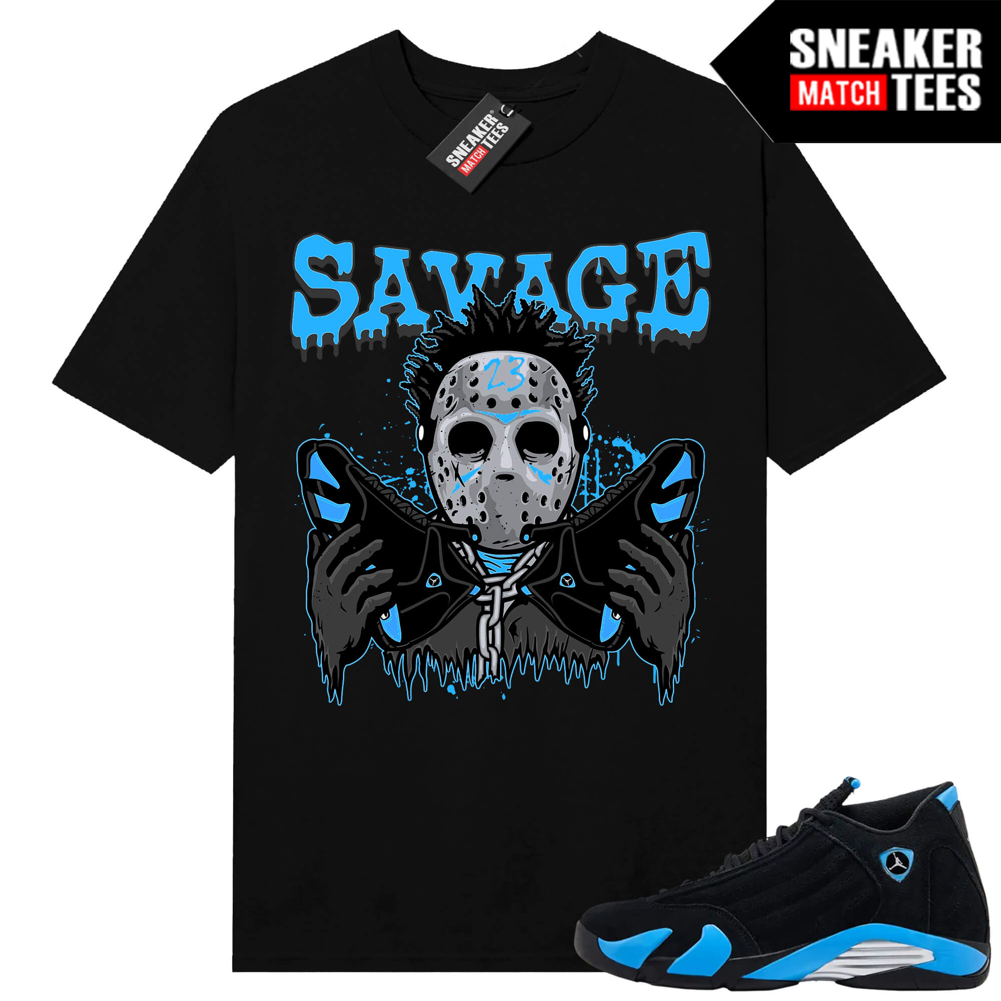 The “Savage 23” Tee shirt was designed to match with your Jordan 14 sneakers. This design is exclusive to Sneaker Match Tees Online shop. Complete your Sneaker outfit with this exclusive design.