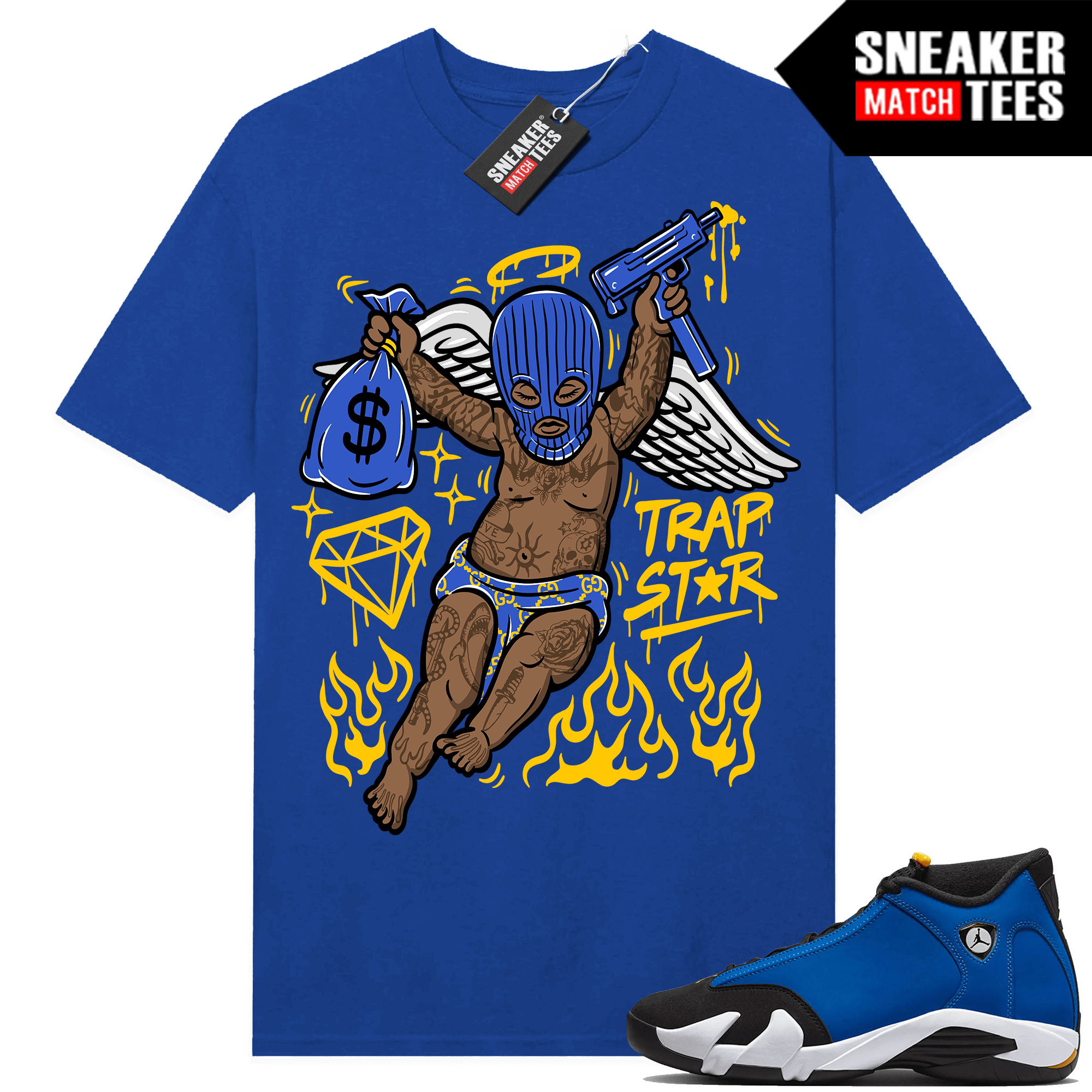 Jordan 14 Laney shirts Sneaker Match Royal Trapstar Angel. Sneaker Match shirts designed to match Laney 14s colorway. Sneaker clothing and apparel to match Jordan 14 retro sneakers.