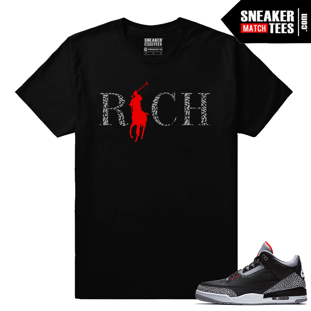 Jordan 3 Black Cement Sneaker tees Country Club Rich. Sneaker tees and Streetwear clothing to match and wear with Air Jordan 3 Black Cement
