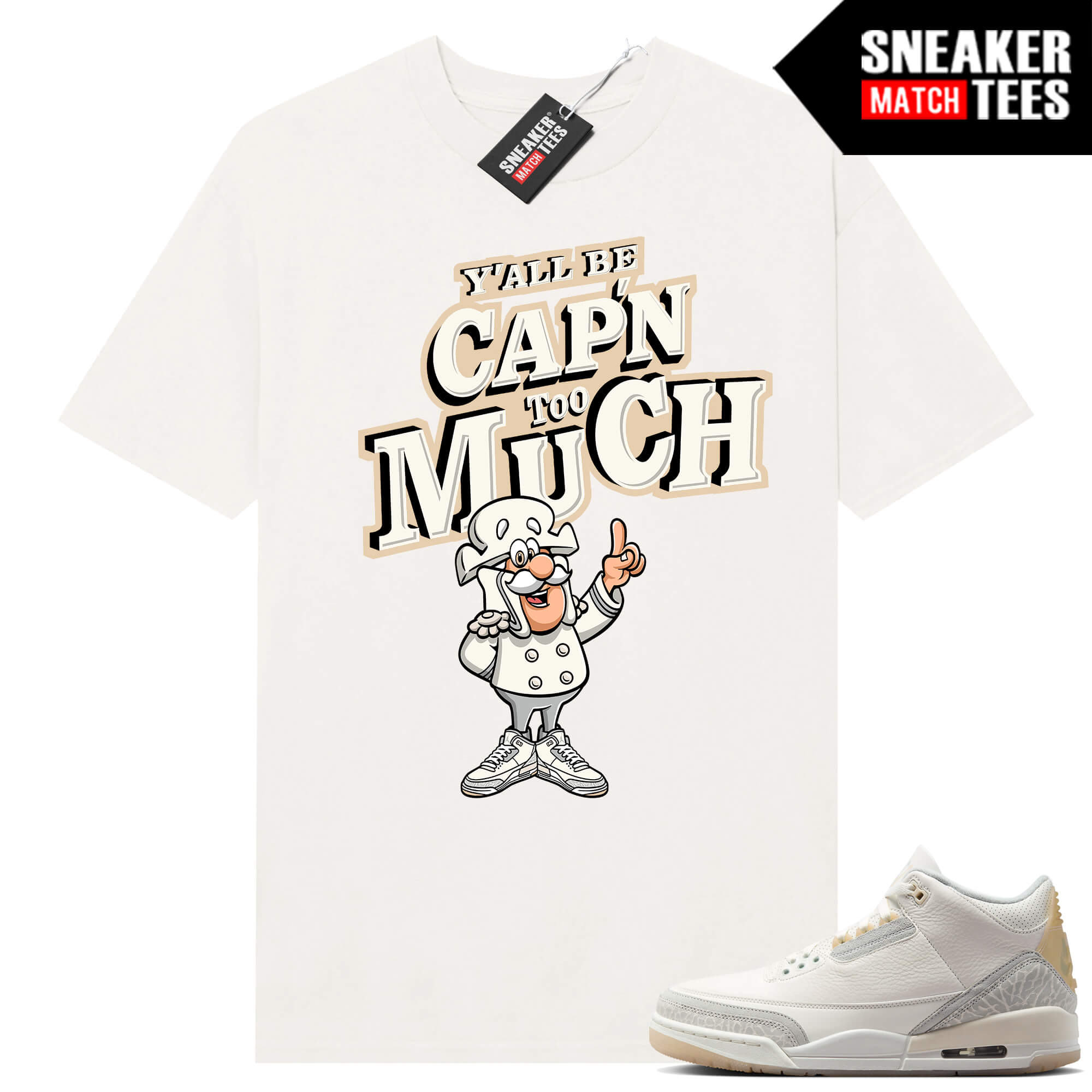 The “Toprank CAPN too Much” Tee shirt was designed to match with your sneakers. This design is exclusive to Sneaker Match Tees Online shop. Complete your Sneaker outfit with this exclusive design.