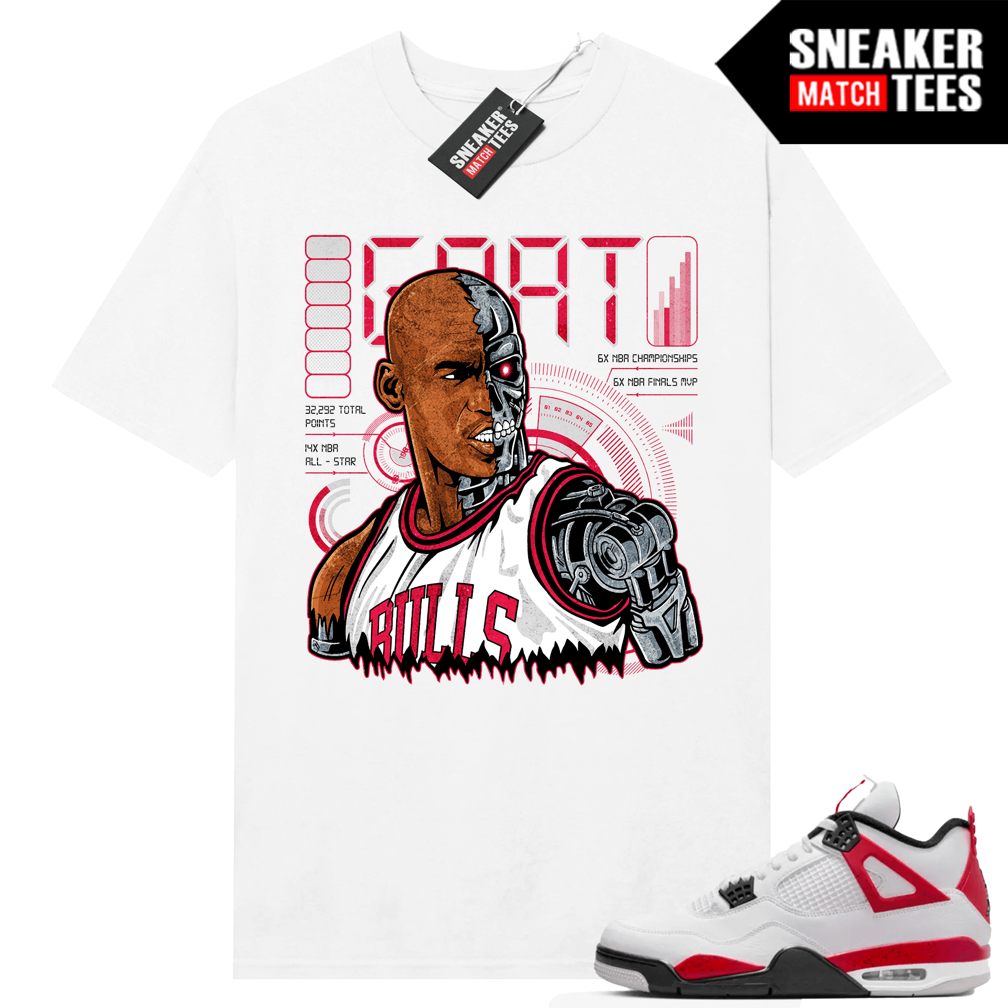 Jordan 4 Red Cement T-shirt Sneaker Match White MJ Terminator. Sneaker Match shirts designed to match Red Cement 4s colorway. Sneaker clothing and apparel to match Jordan 4 Red Cement.