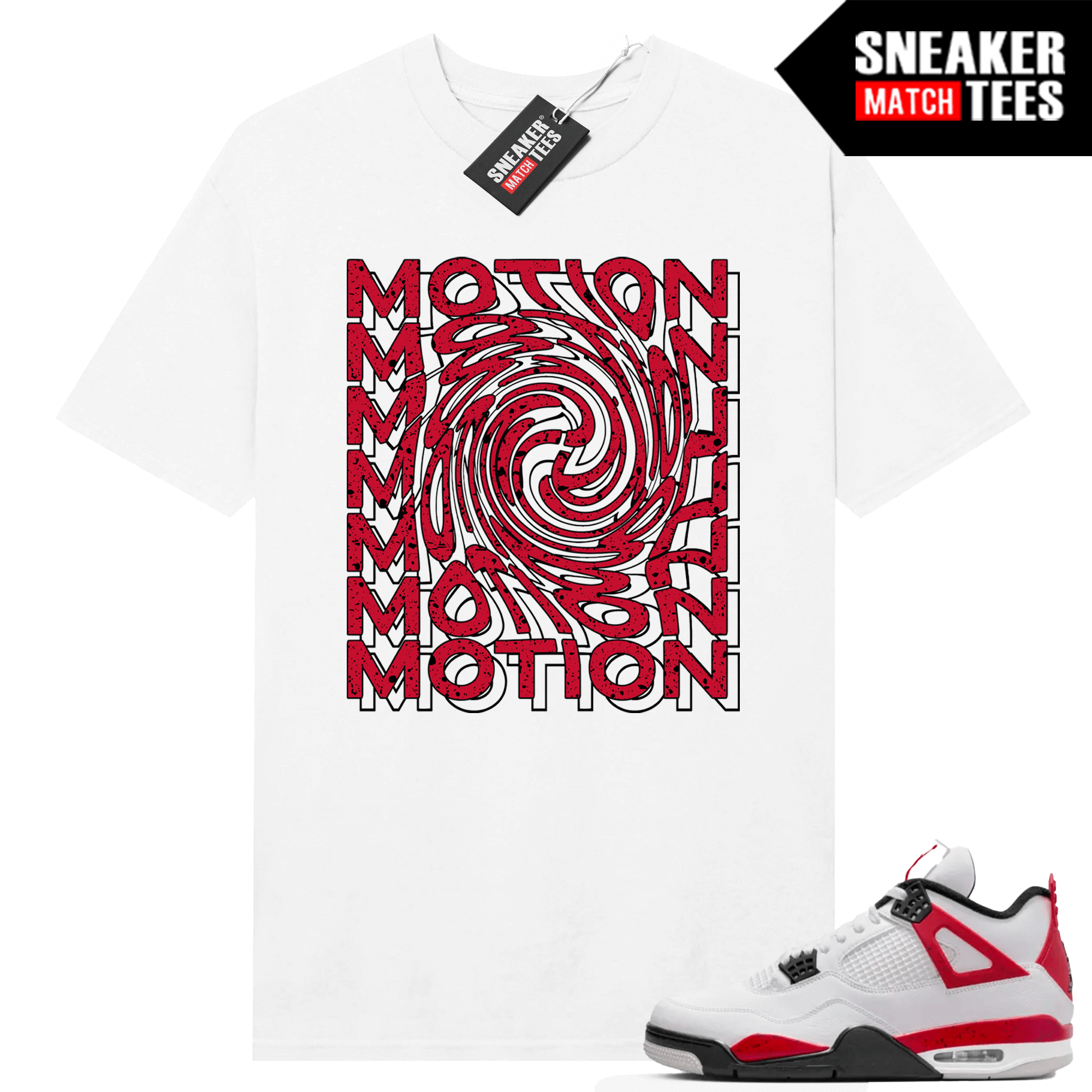 Jordan 4 Red Cement T-shirt Sneaker Match White Motion. Sneaker Match shirts designed to match Red Cement 4s colorway. Sneaker clothing and apparel to match Jordan 4 Red Cement.