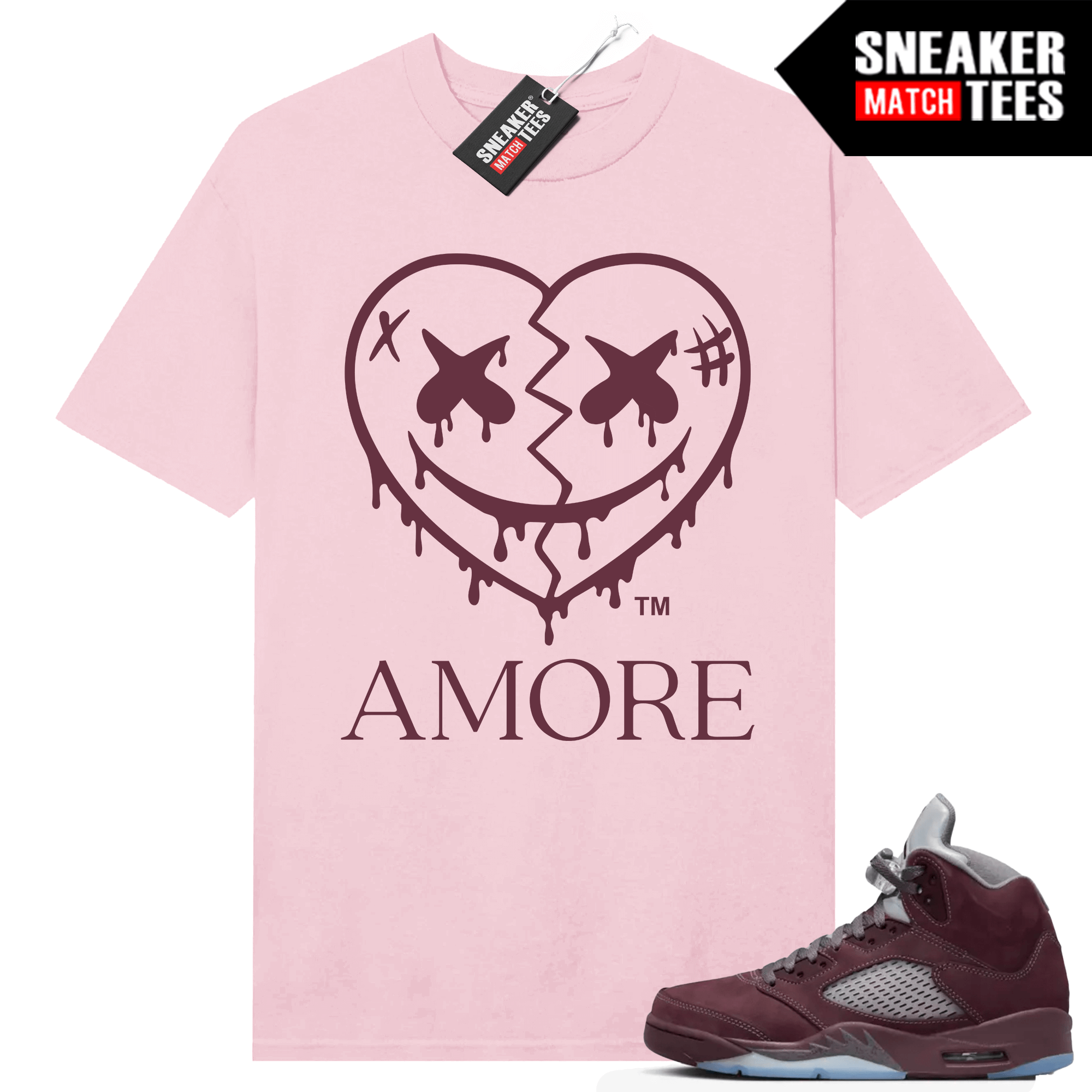 Burgundy 5s x Sneaker Match ® Collection. Jordan 5 Burgundy T-shirt Sneaker Match Pink AMORE Crazy Love Heart. Sneaker clothing and graphic sneaker tees to match the latest sneakers.
