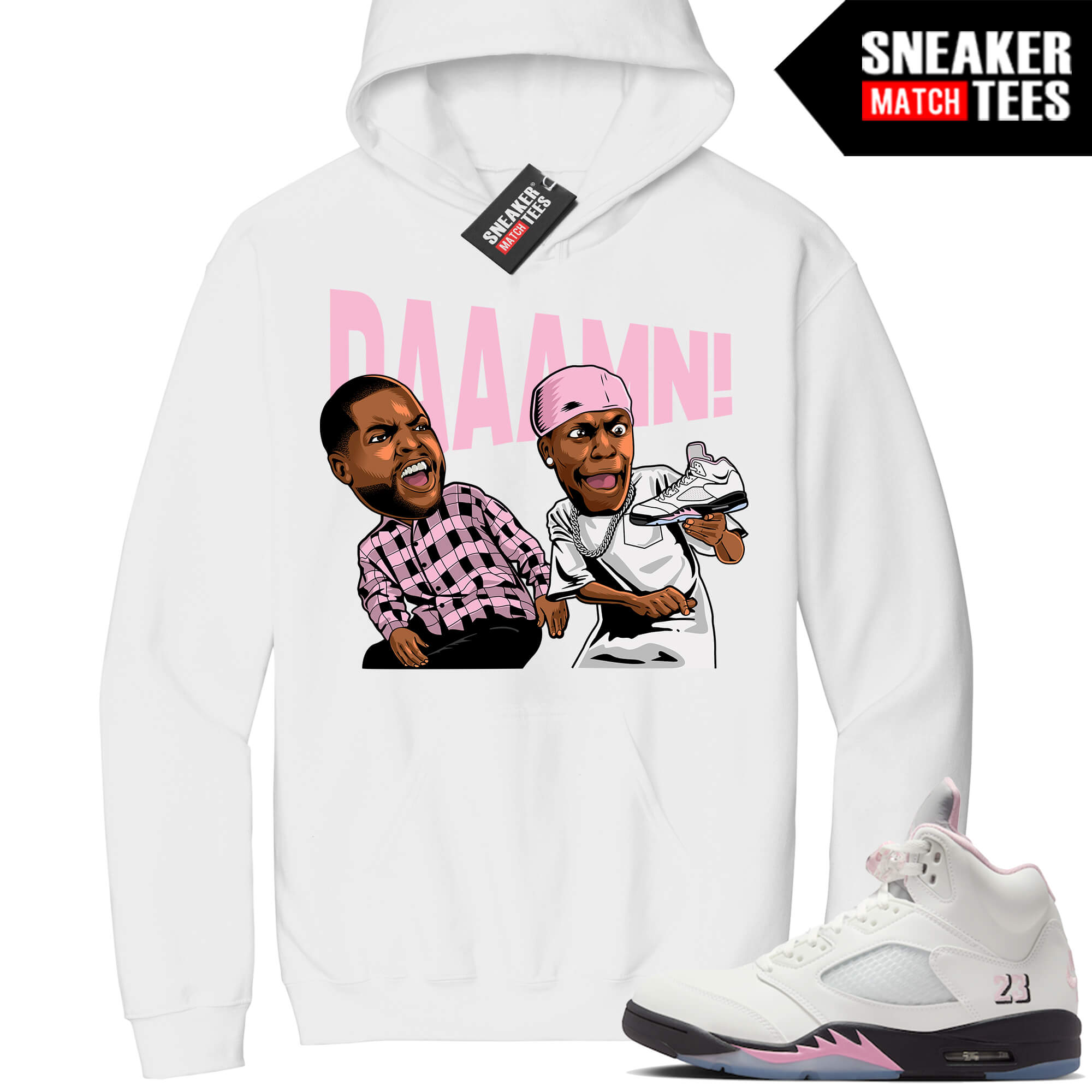 Jordan 5 Soft Pink Sneaker Match Hoodie White Friday DAAAMN. Sneaker Match Hoodies designed to match the Latest sneaker release.