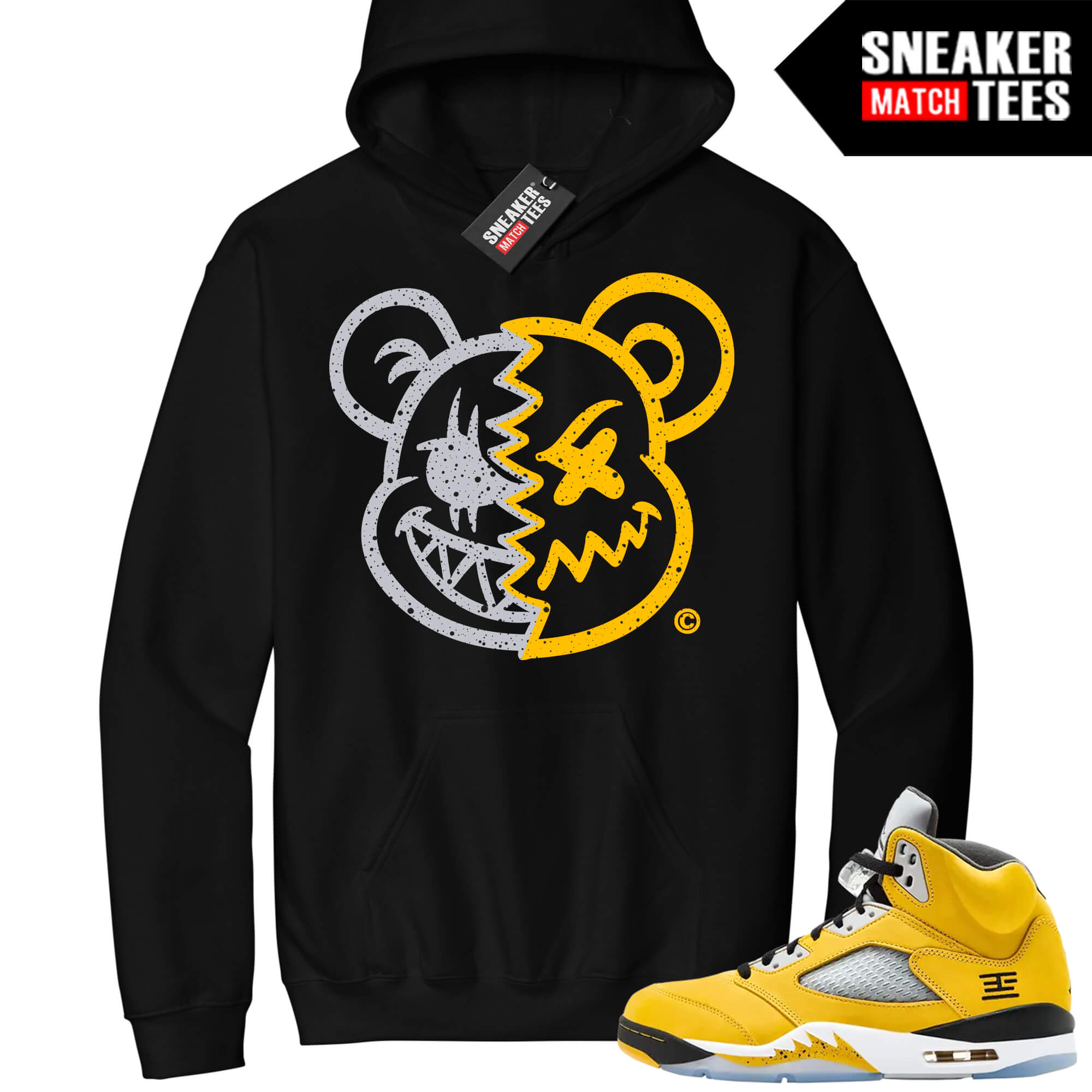 Jordan 5 Tokyo Sneaker Match Hoodie Black Psycho Teddy. Sneaker Match Hoodies designed to match Tokyo 5 colorway. Sneaker clothing and apparel to match Jordan 5 Tokyo retro sneakers.