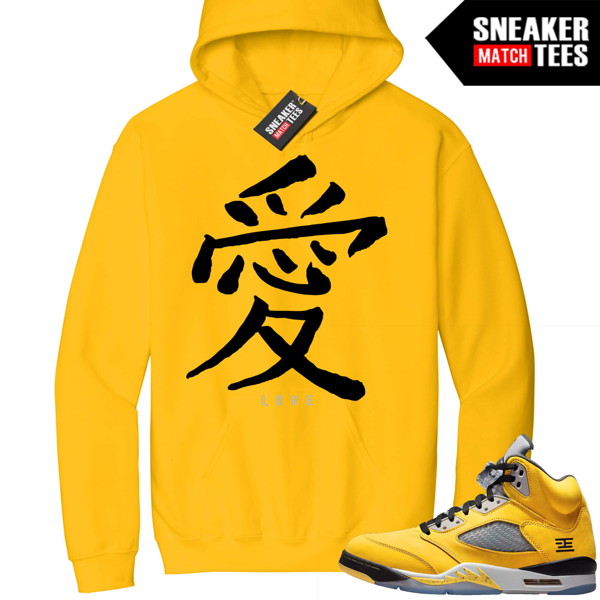 Tokyo 5 Sneaker Match ® Collection. Jordan 5 Tokyo Sneaker Match Hoodie Yellow Love. Sneaker clothing and graphic sneaker tees to match Jordan 5 retro shoes.