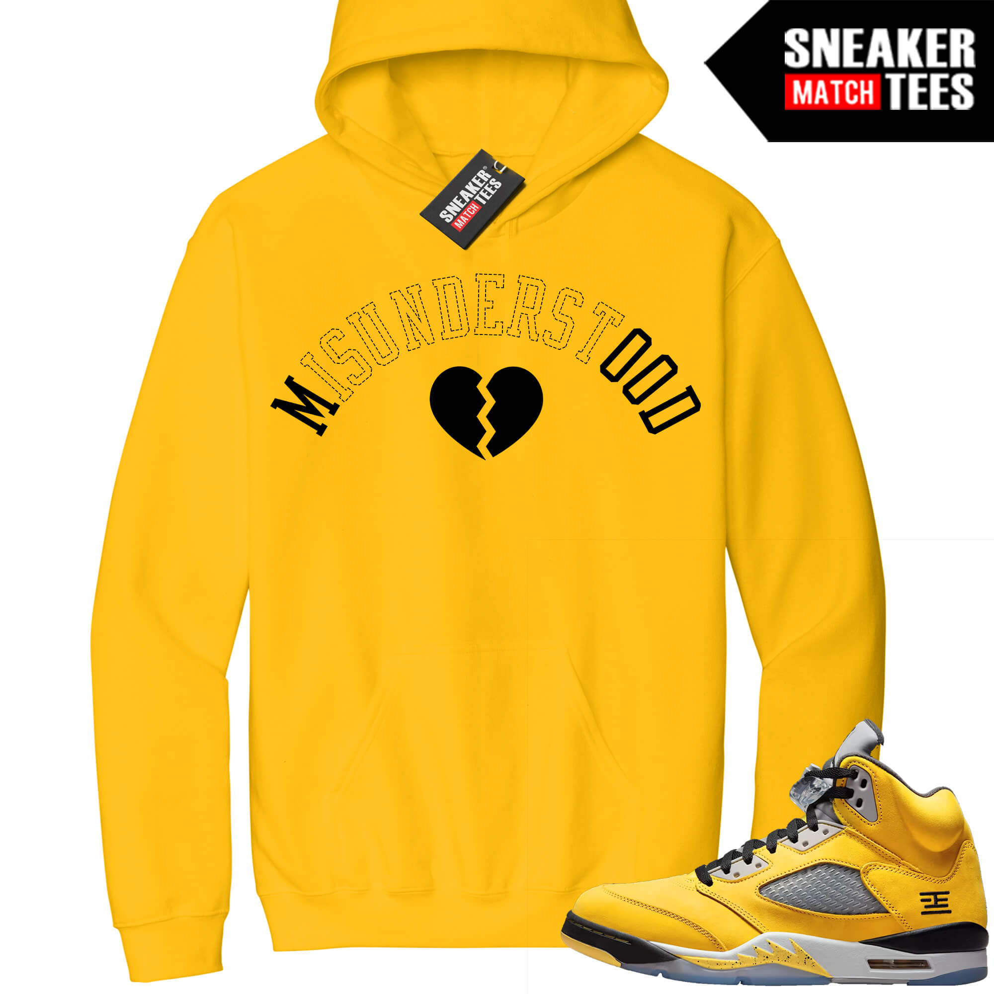 Jordan 5 Tokyo Sneaker Match Hoodie Yellow Misunderstood. Sneaker Match Hoodies designed to match Tokyo 5 colorway. Sneaker clothing and apparel to match Jordan 5 Tokyo retro sneakers.