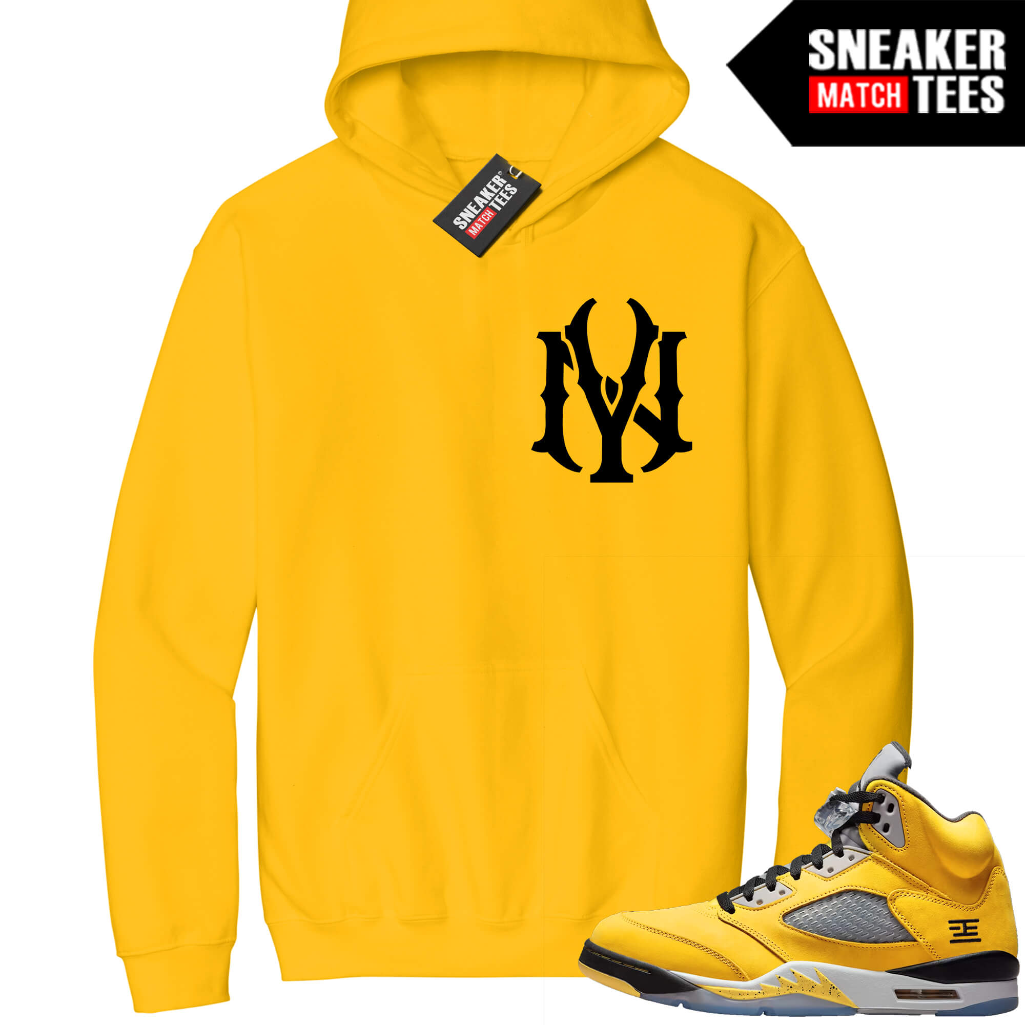 Jordan 5 Tokyo Sneaker Match Hoodie Yellow NY. Sneaker Match Hoodies designed to match Tokyo 5 colorway. Sneaker clothing and apparel to match Jordan 5 Tokyo retro sneakers.