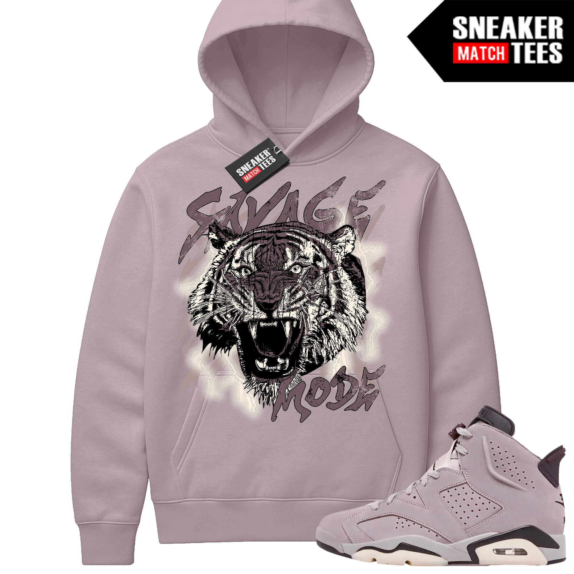 Jordan 6 AMM Smokey Mauve Sneaker Match Hoodie Mauve Savage Mode. Sneaker Match Hoodies designed to match Mauve 6s colorway. Sneaker clothing and apparel to match Jordan 6 AMM Mauve retro sneakers.