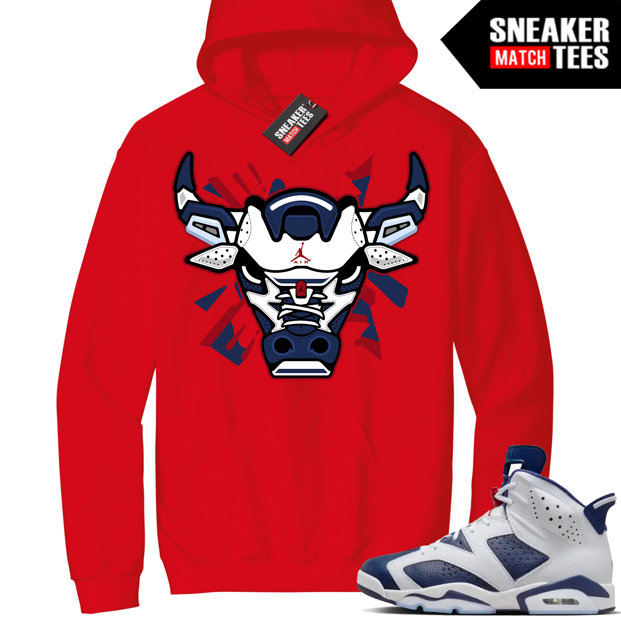 Jordan 6 Olympic Sneaker Match Hoodie Red Retro Bull. Sneaker Match Hoodies designed to match the Latest sneaker release.