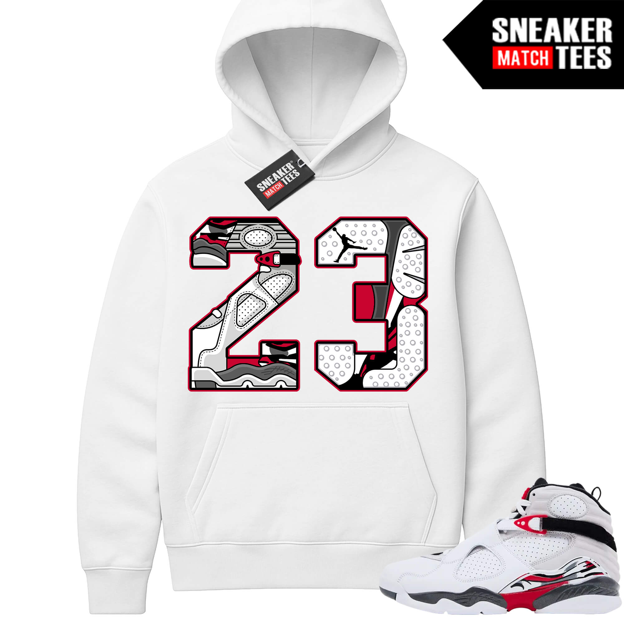 Jordan 8 Bugs Bunny Sneaker Match Hoodie White 23 Retro. Sneaker Match Hoodies designed to match Bugs Bunny 8s colorway. Sneaker clothing and apparel to match Jordan 8 Bugs Bunny retro sneakers.