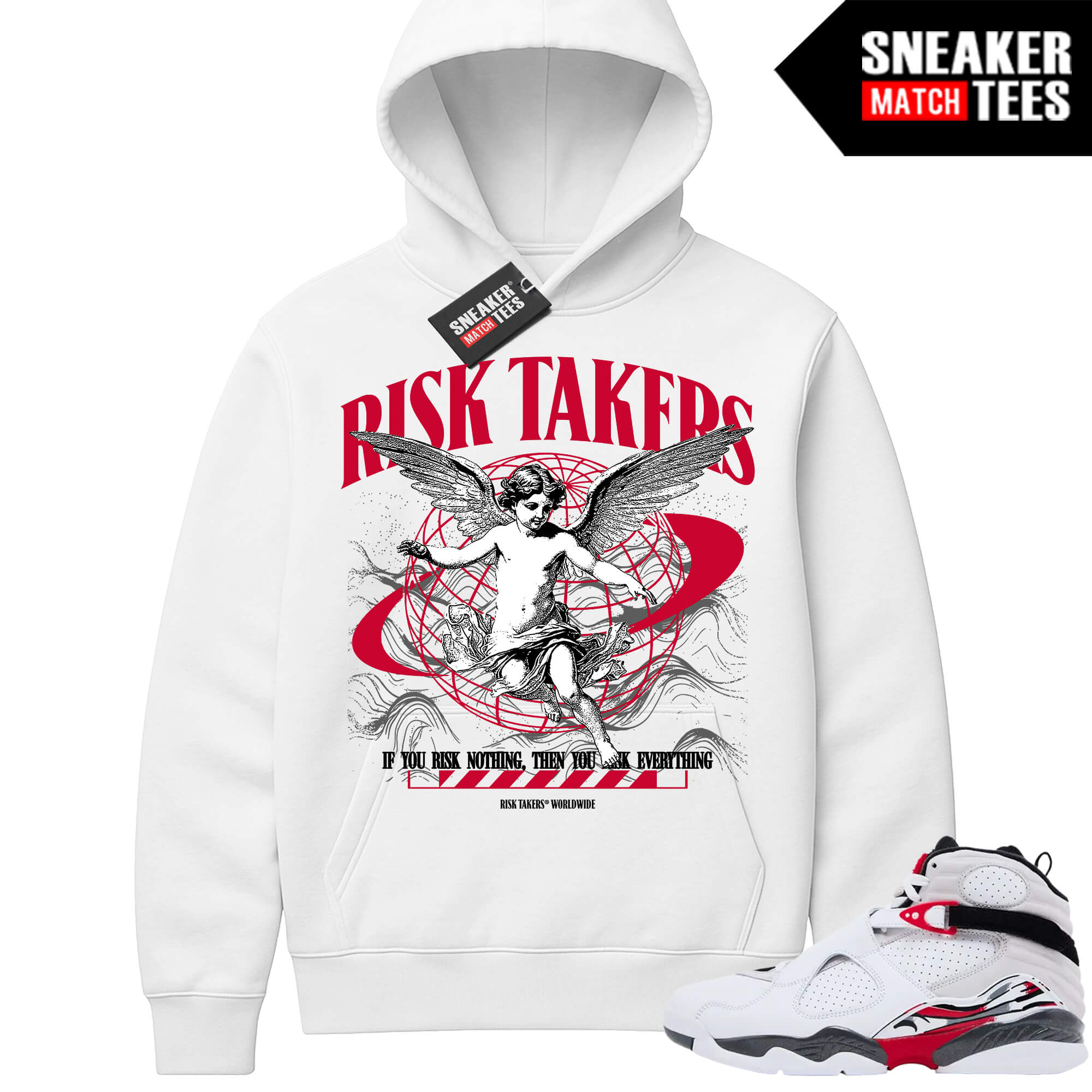 Jordan 8 Bugs Bunny Sneaker Match Hoodie White Risktakers Worldwide. Sneaker Match Hoodies designed to match Bugs Bunny 8s colorway. Sneaker clothing and apparel to match Jordan 8 Bugs Bunny retro sneakers.