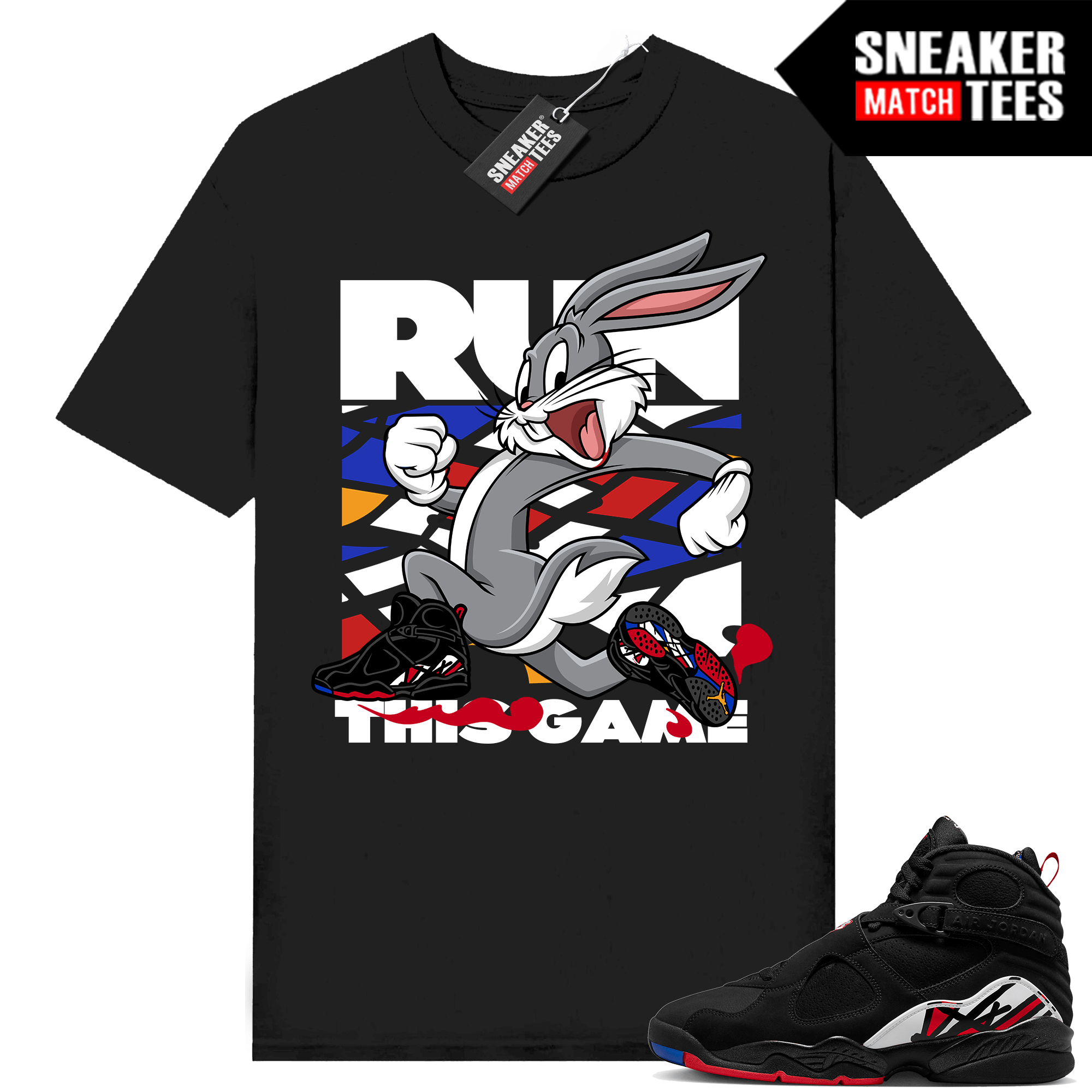 Jordan 8 Playoffs Sneaker Tees Black shirt Run This Game. Sneaker Match T-shirts designed to match Playoffs 8 colorway. Sneaker clothing and apparel to match Jordan 8 Playoffs retro sneakers.