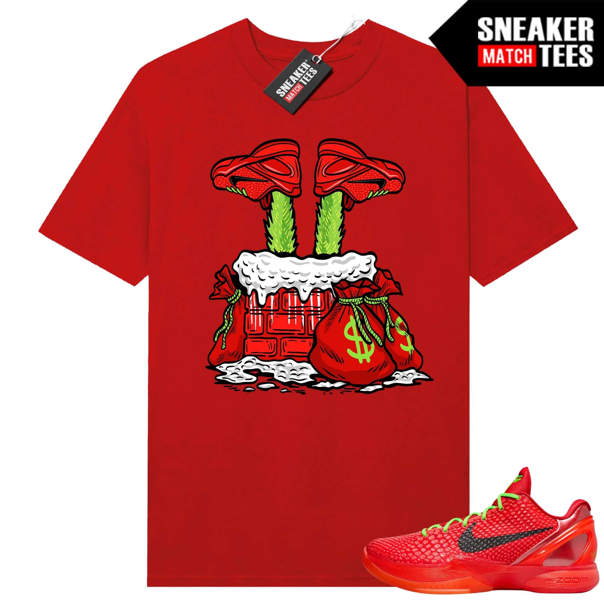 Kobe 6 Protro Reverse Grinch Sneaker Match T-shirt Red Grinch Chimney. Sneaker Match Tees designed to match Reverse Kobe Grinch colorway. Sneaker clothing and apparel to match Kobe Reverse Grinch sneakers.