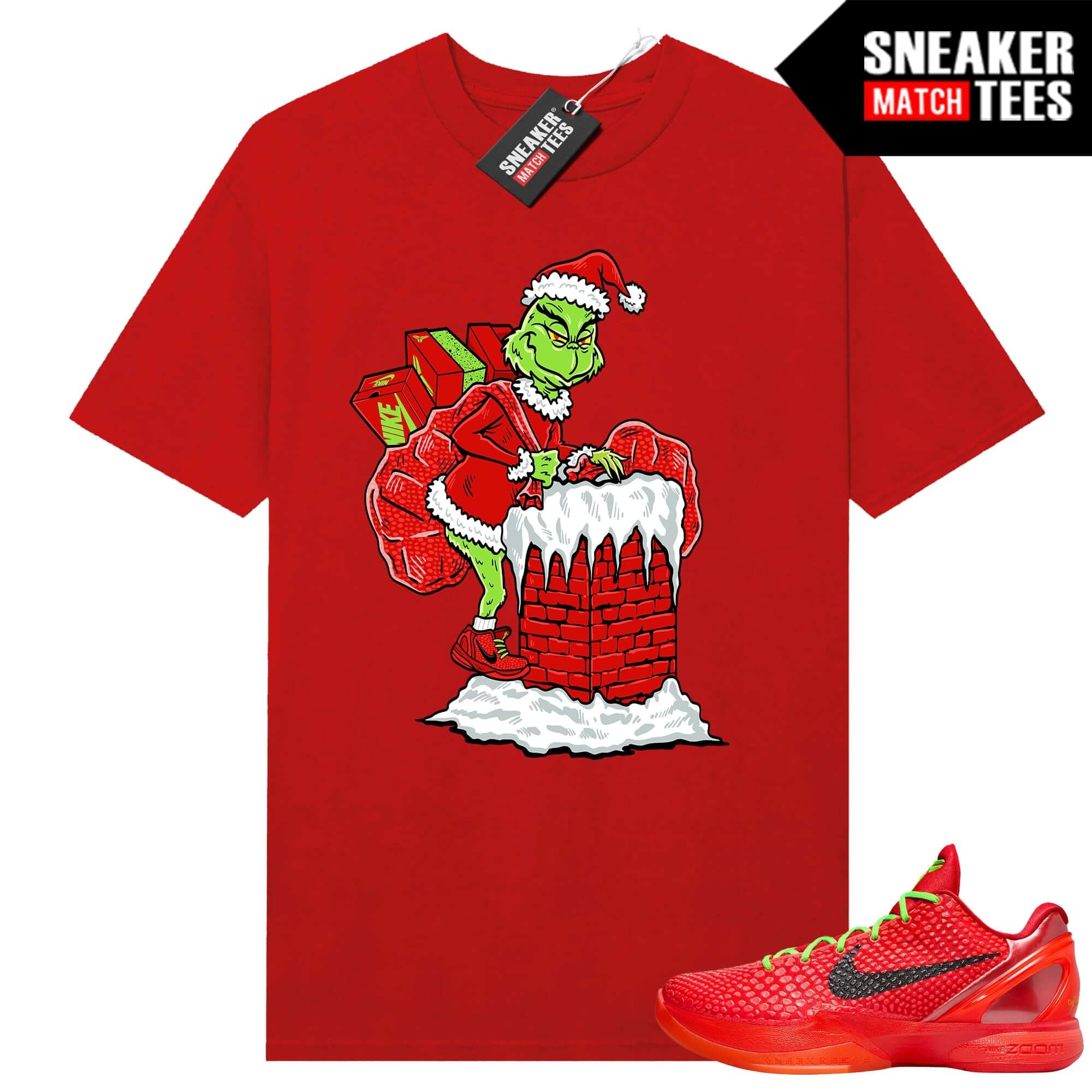 Kobe 6 Protro Reverse Grinch Sneaker Match T-shirt Red Grinch Steals Christmas. Sneaker Match Tees designed to match Reverse Kobe Grinch colorway. Sneaker clothing and apparel to match Kobe Reverse Grinch sneakers.