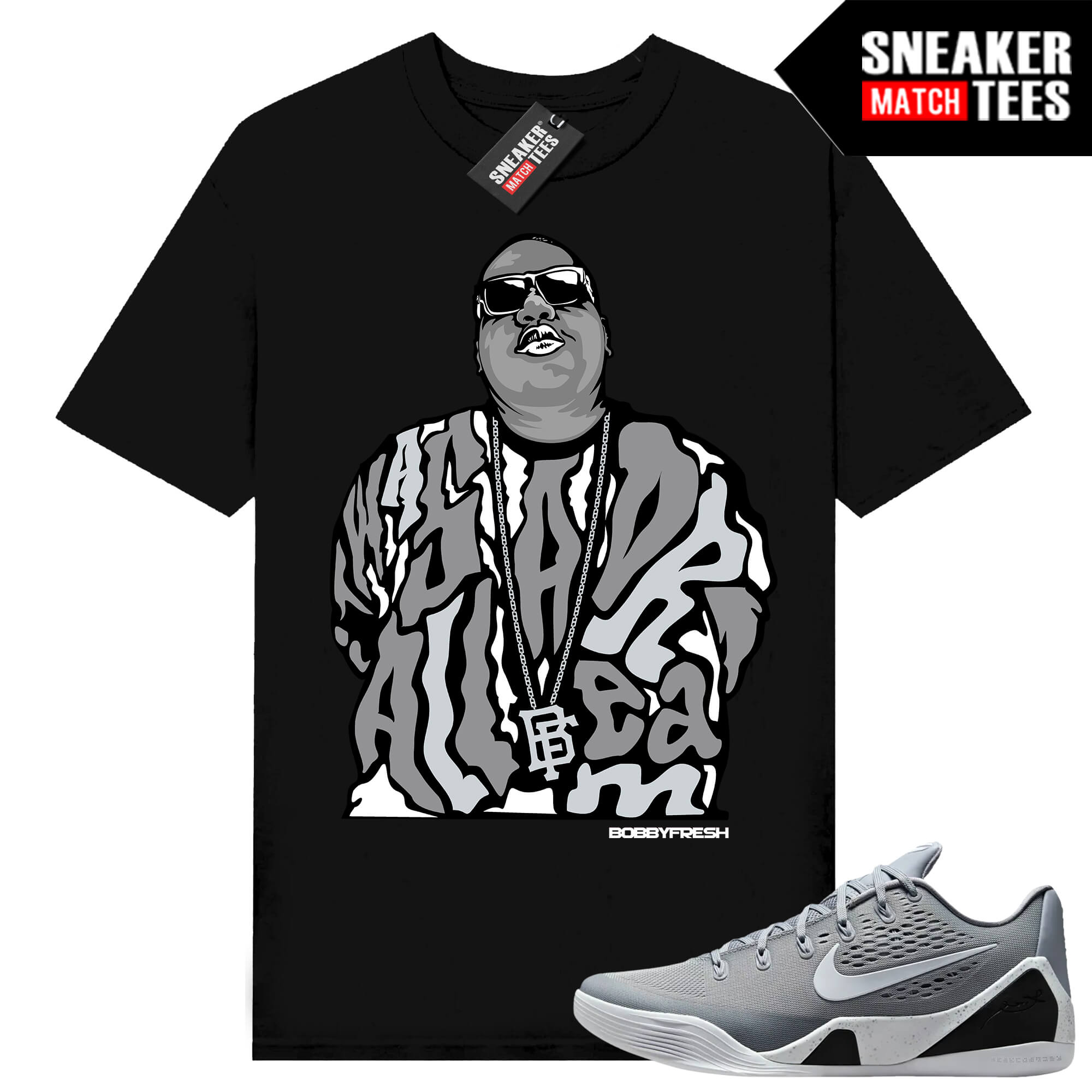 Biggie It was All A Dream x Sneaker Match ® Collection. Kobe 9 Protro Wolf Grey Shirt to match. Sneaker clothing and graphic sneaker tees to match the latest sneakers.
