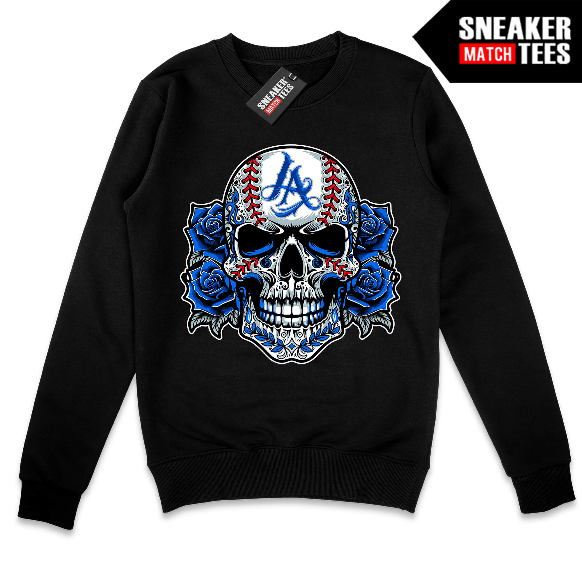 LA Baseball Skull Toon Black Crewneck Sweatshirt
