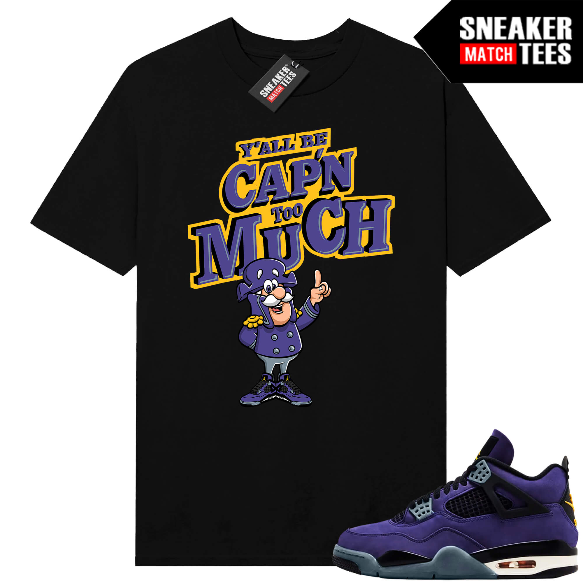 The “CAPN too Much” Tee shirt was designed to match with your Jordan 4 sneakers. This design is exclusive to Sneaker Match Tees Online shop. Complete your Sneaker outfit with this exclusive design.