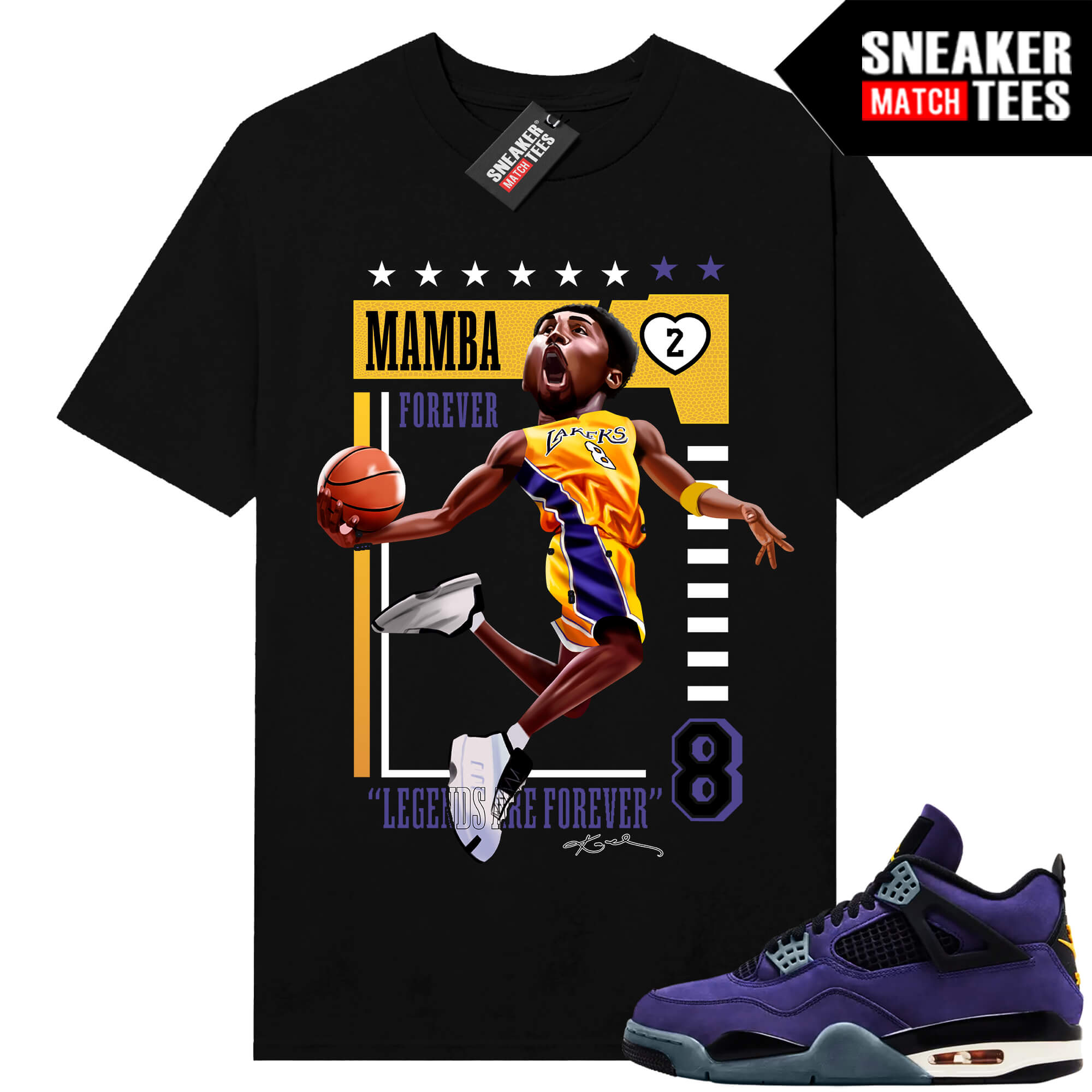 The “Mamba Legend are Forever” Tee shirt was designed to match with your Jordan 4 sneakers. This design is exclusive to Sneaker Match Tees Online shop. Complete your Sneaker outfit with this exclusive design.