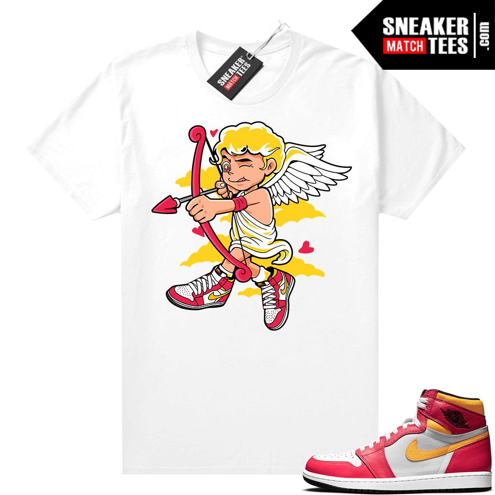 Light Fusion Red 1s Jordan Sneaker Tees Shirts Match White Sneaker Cupid. Sneaker Match shirts designed to match Fusion Red 1s colorway. Sneaker clothing and apparel to match Jordan 1 retro sneakers.