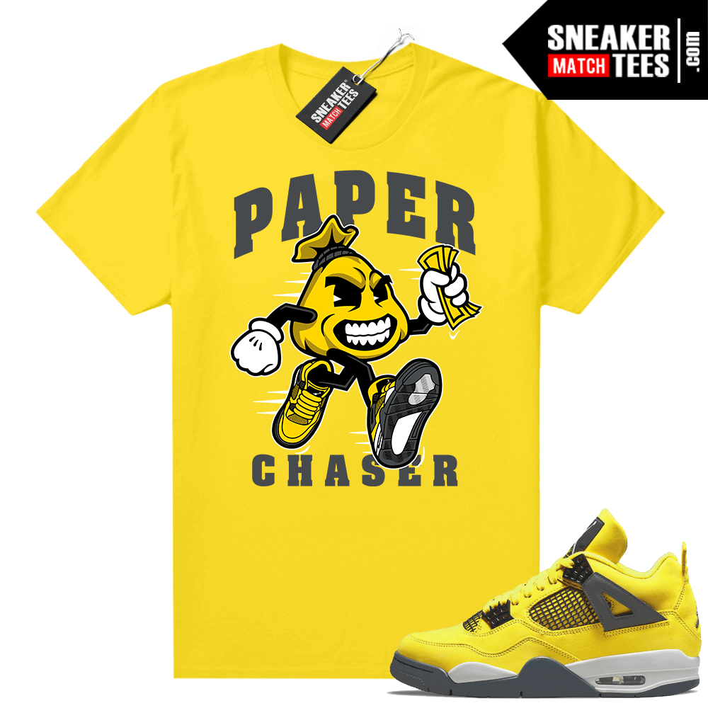 Lightning 4s Jordan Sneaker Tees Yellow Paper Chaser. Sneaker Match shirts designed to match Yellow Jordan 4s “Lightning” colorway. Sneaker clothing and apparel to match Jordan 4 retro sneakers.