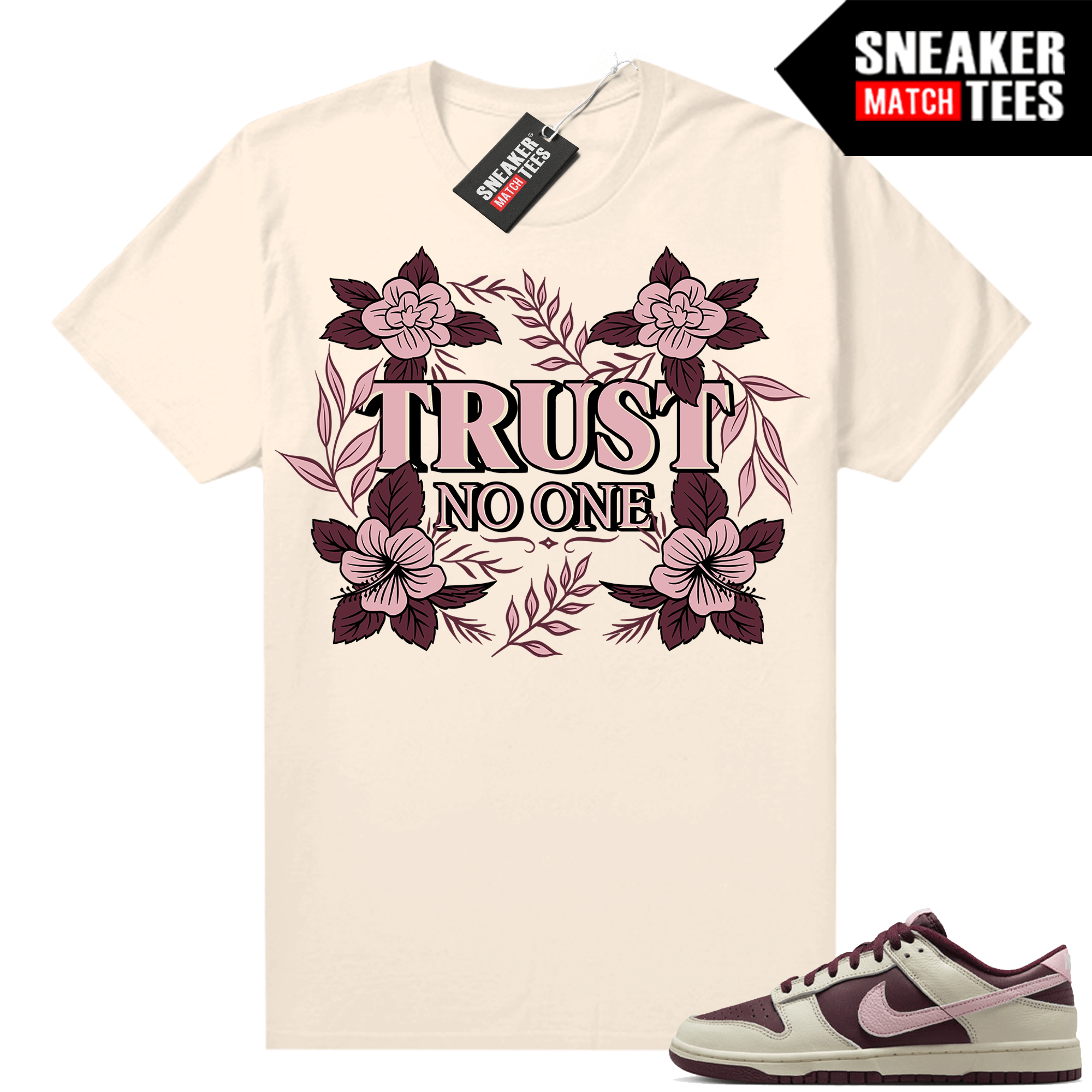 Nike Dunk low Valentine’s Day shirts Sneaker Match Sail Floral Trust No One. Sneaker Match shirts designed to match Nike Dunk Valentines Day colorway. Sneaker clothing and apparel to match Nike Dunk sneakers.