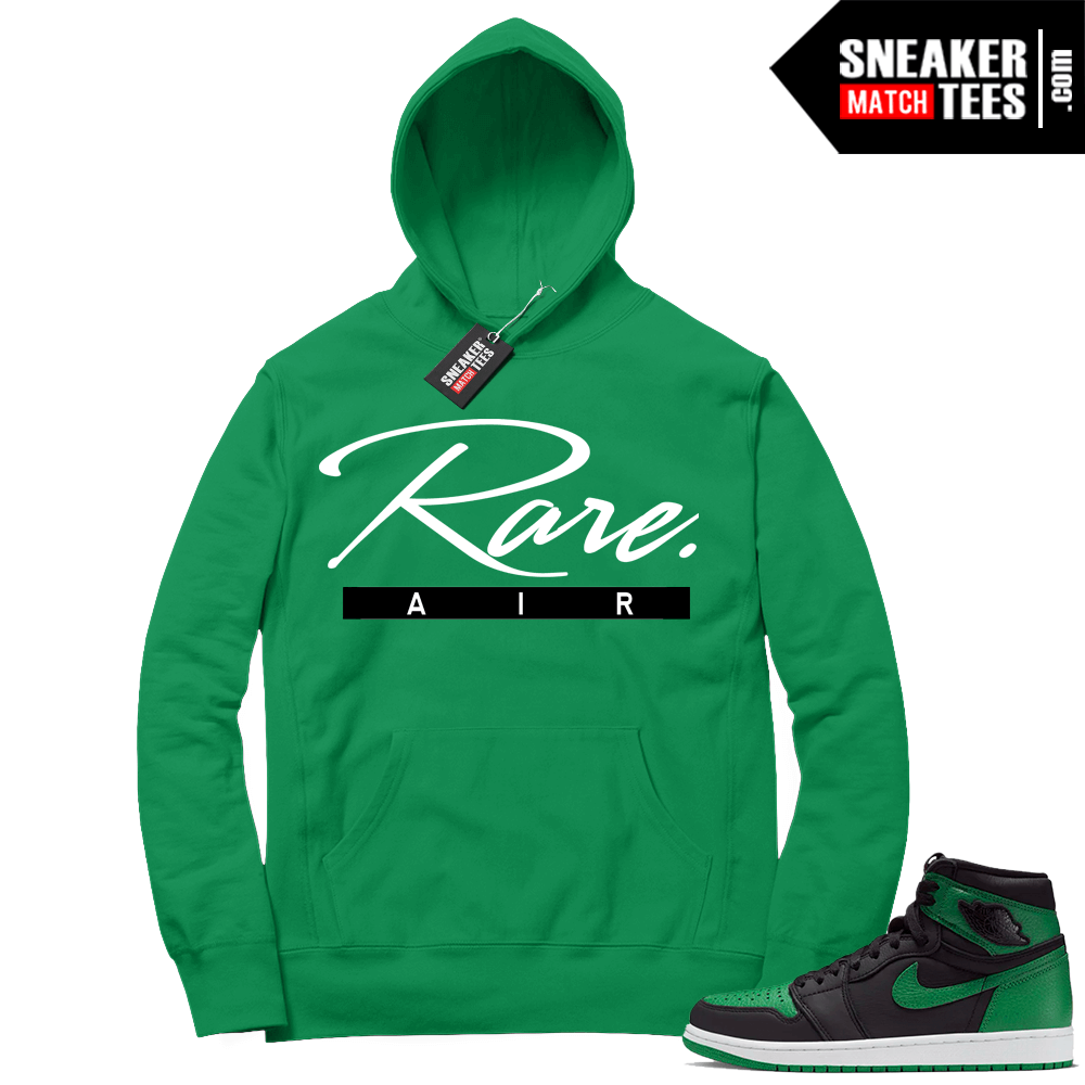 Pine Green 1s Hoodie Rare Air Script. Sneaker Match clothing designed to match Pine Green 1s colorway. Sneaker clothing and apparel to match Jordan 1 retro shoes.