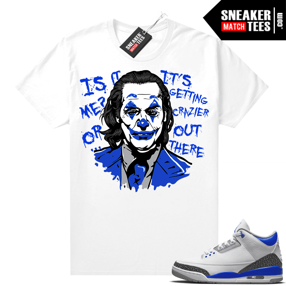 Racer Blue 3s Jordan Sneaker Tees Joker. Sneaker Match shirts designed to match Racer Blue 3 colorway. Sneaker clothing and apparel to match Jordan 3 retro sneakers.