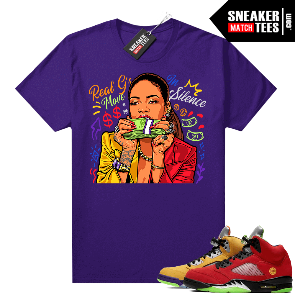 The Jordan 5 What The “Move In Silence” shirt was designed to match with your Air Jordan sneakers. This design is exclusive to Sneaker Match Tees Online shop. Complete your Sneaker outfit with this exclusive design.