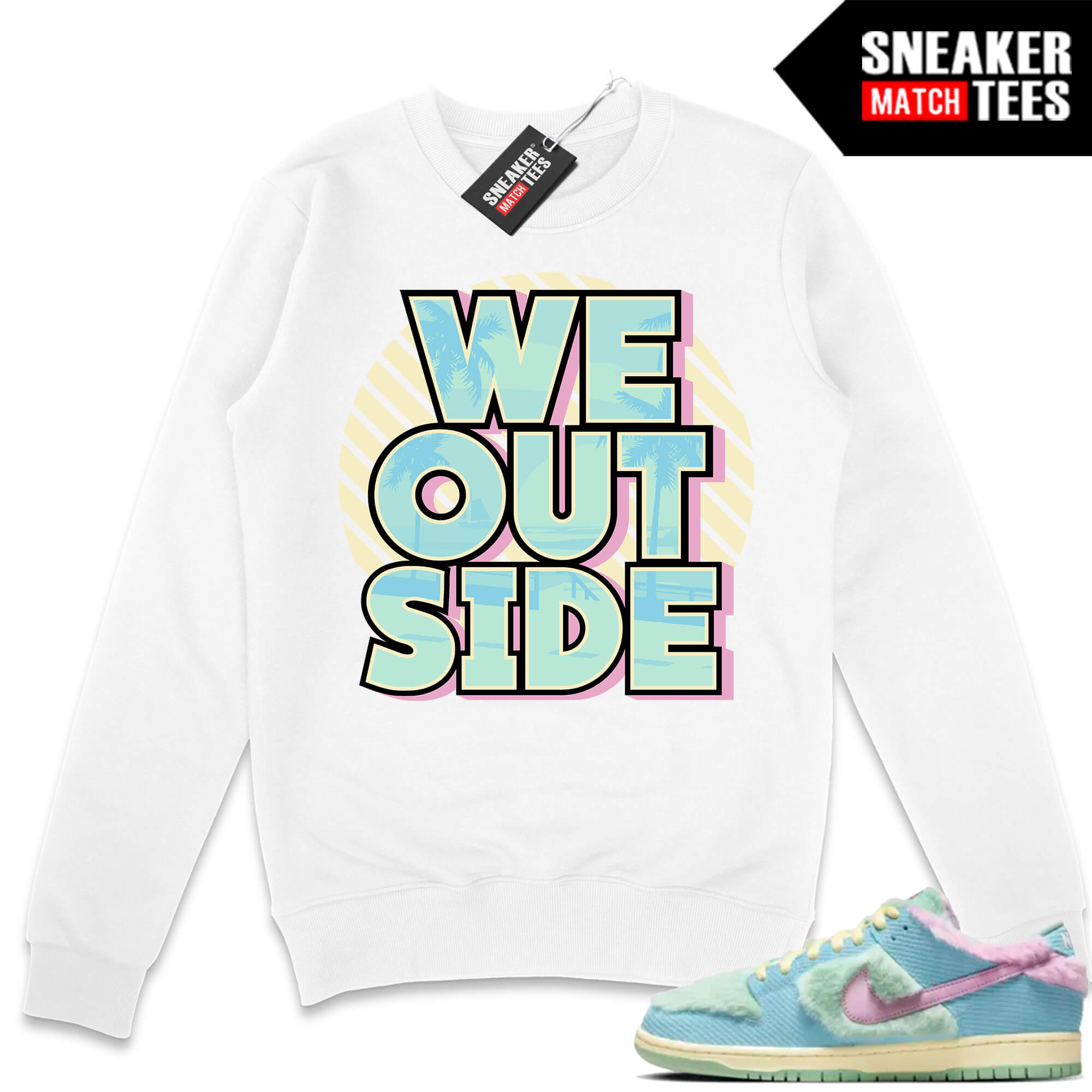 The “We Outside” Tee shirt was designed to match with your Dunk sneakers. This design is exclusive to Sneaker Match Tees Online shop. Complete your Sneaker outfit with this exclusive design.